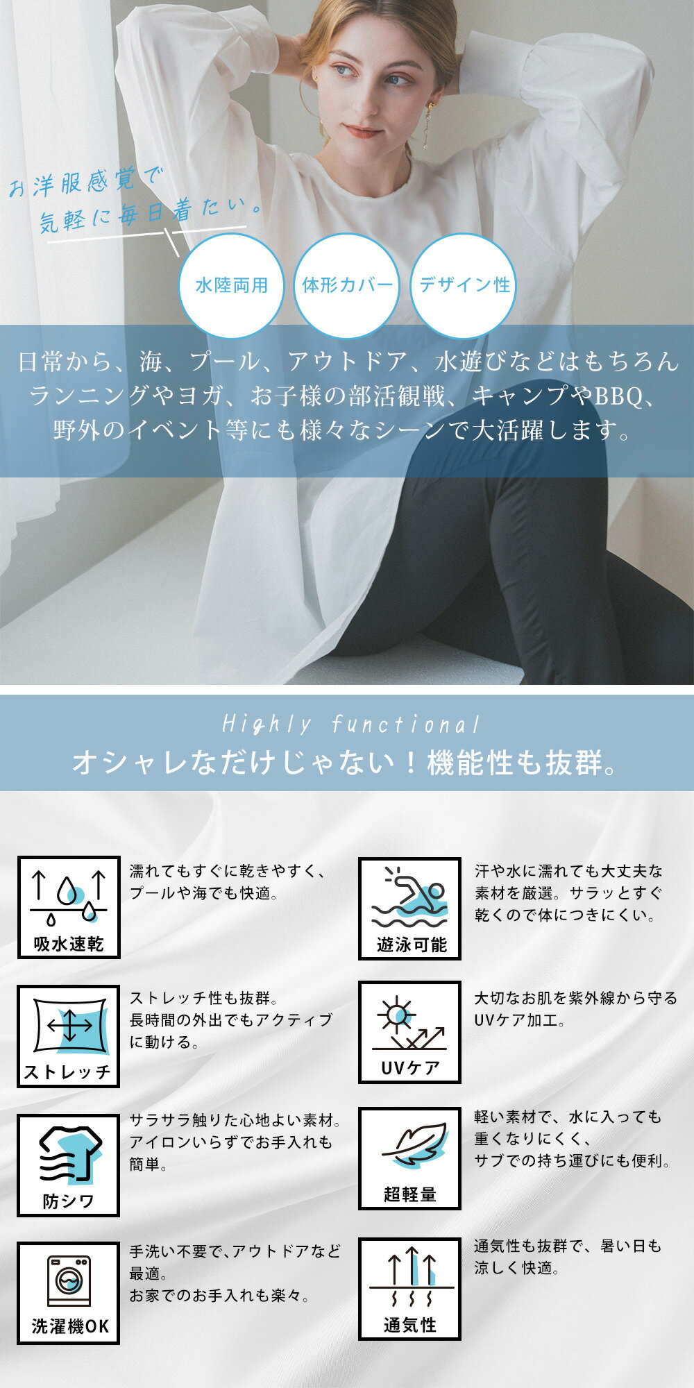 【クーポンで36%OFF★期間限定】ラッシュガード 体型カバー 水着 おしゃれ ママ レディース UVケア 水陸両用 ブラウス トップス 接触冷感 速乾 着やせ おしゃれ かわいい カバーアップ 薄手 日焼け防止 オーバーサイズ レジャー 二の腕 二の腕カバー お腹カバー