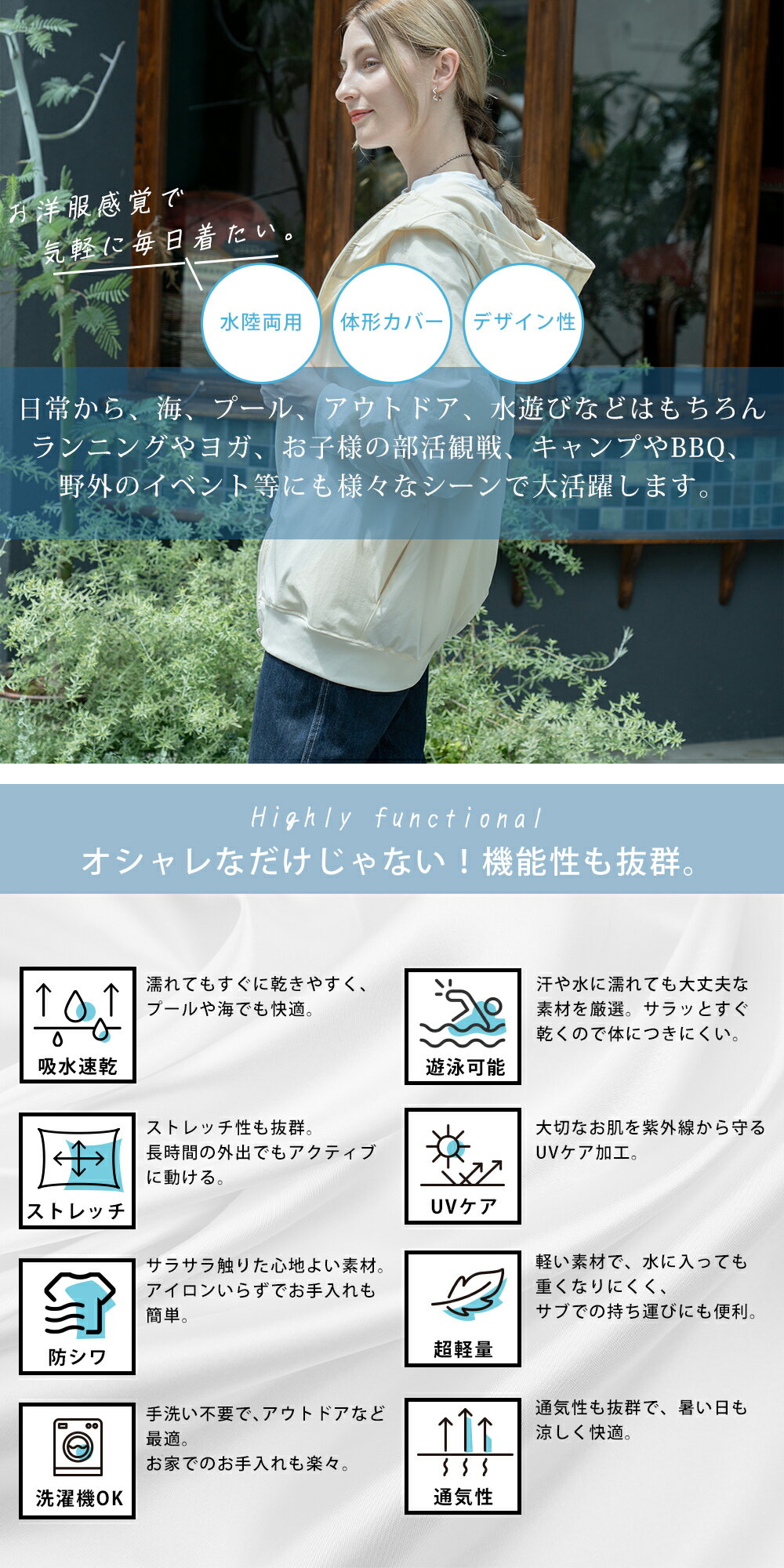 【クーポンで45%OFF 8734円】ラッシュガード 3点セット レディース パーカー上下セット 水陸両用 水着体型カバー用 カバーアップ ピクニック 紫外線対策 おしゃれセットアップ 海 海水浴 ライブ フェス キャンプ 無地 日焼け防止 女性 大人 ママ 露出控えめ 30代 40代