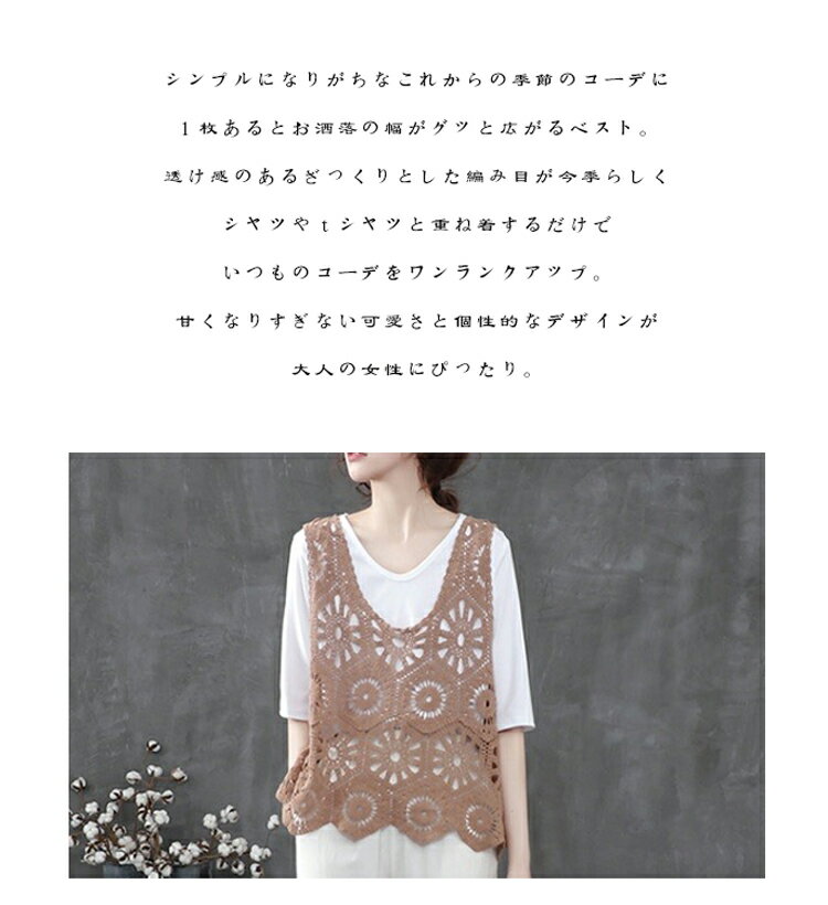 透かし編み ベスト レース レディース 春夏 レースベスト 黒 サマーベスト 夏 レースジレ Vネック ノースリーブ ニットベスト 大きいサイズ 重ね着 夏ベスト 透ける レイヤード トップス 可愛い プルオーバー カジュアル 無地