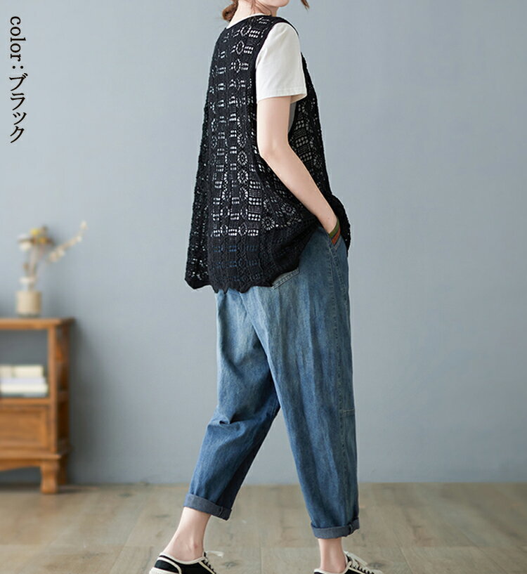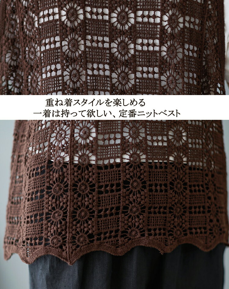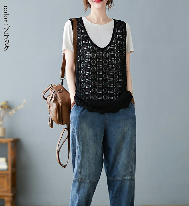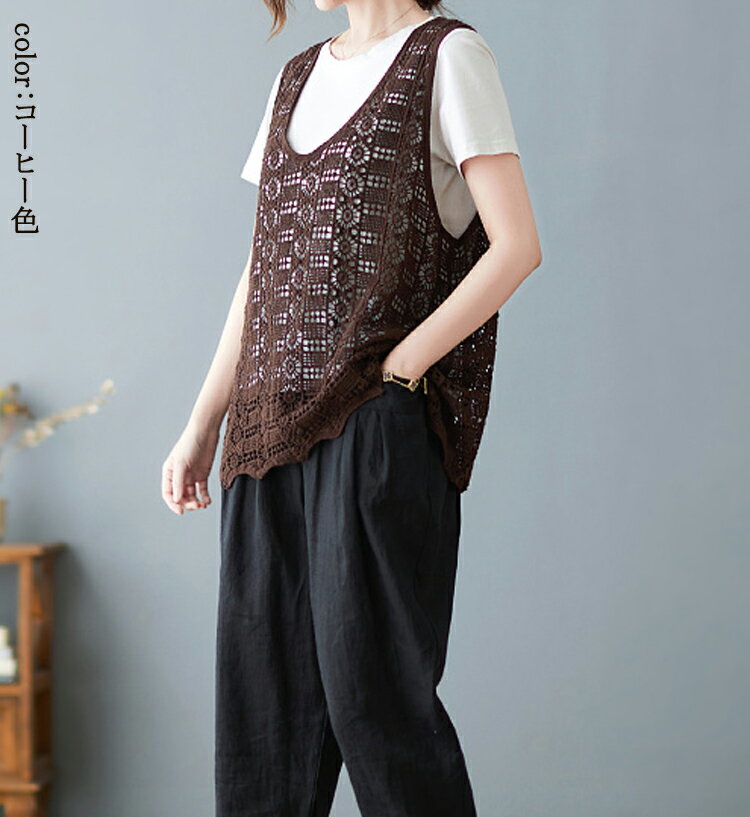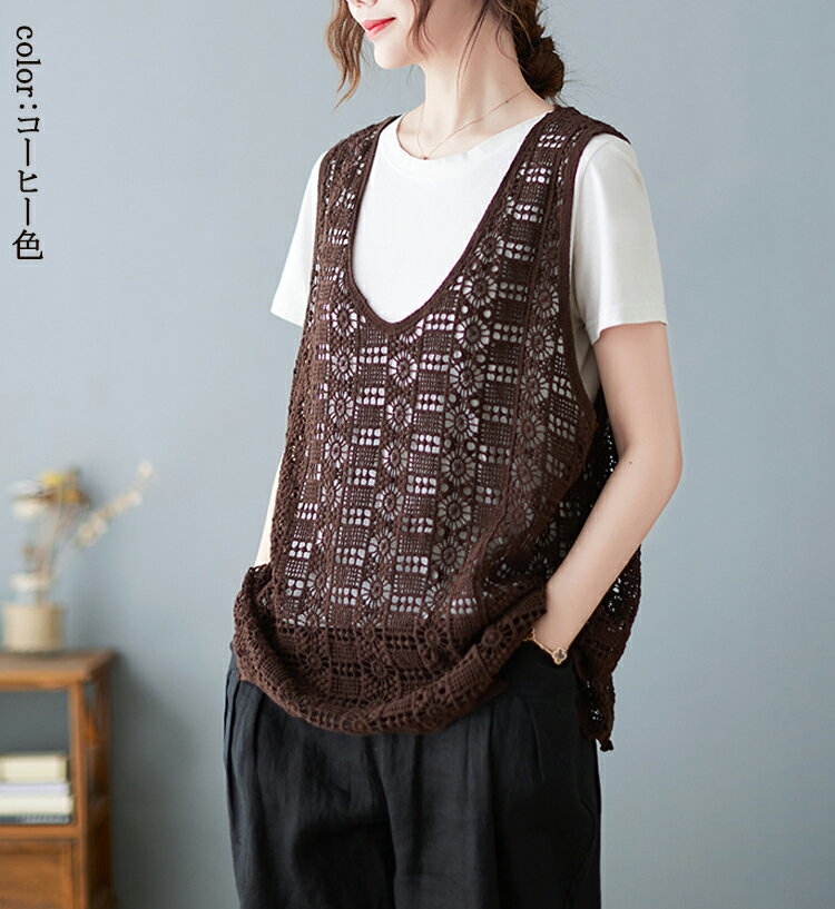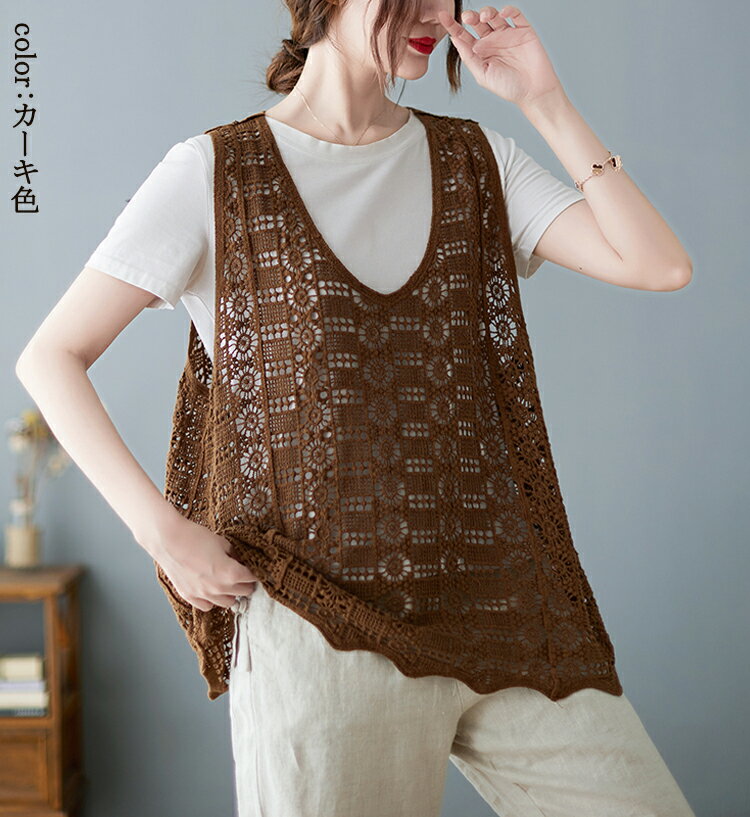 ニットベスト レディース 夏 vネック 透かし編み ニット ベスト 春夏 vネックニット ゆったり プルオーバー ノースリーブ 大きいサイズ 春ベスト 重ね着 春物 トップス レイヤード サマーニットベスト 袖なし 幾何柄