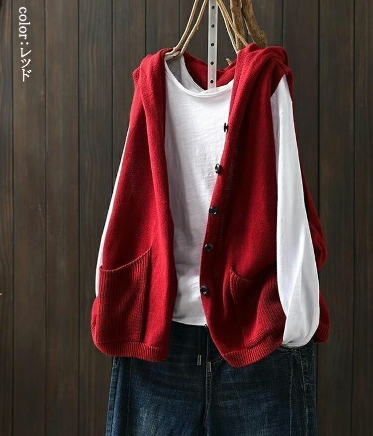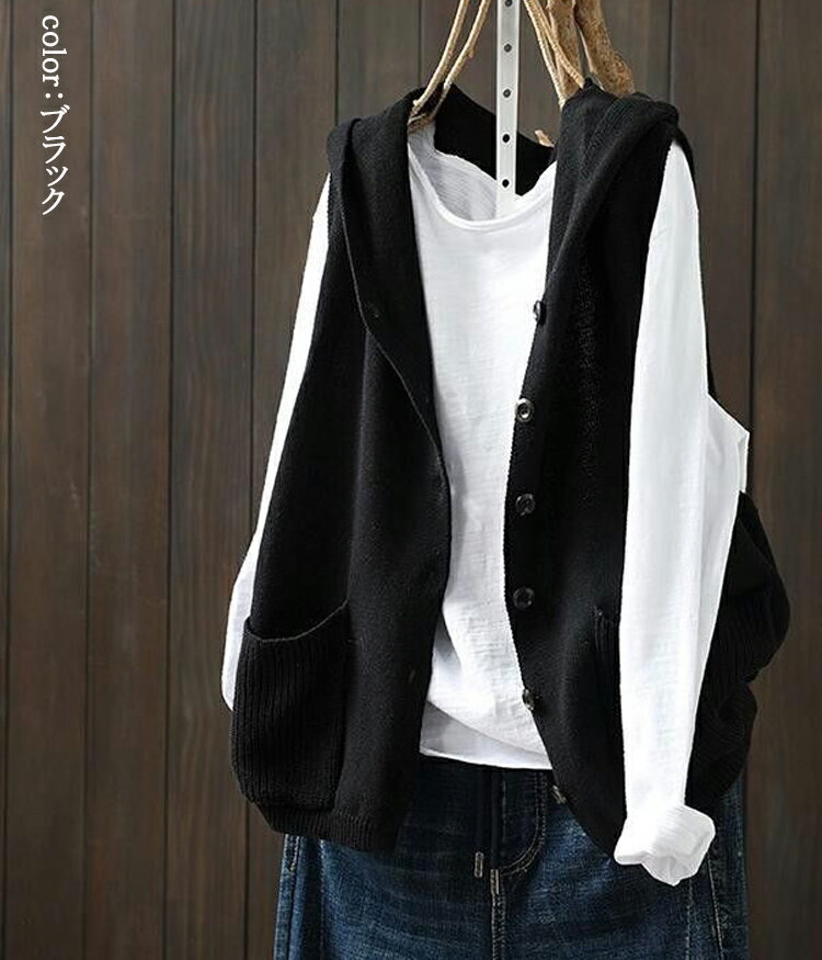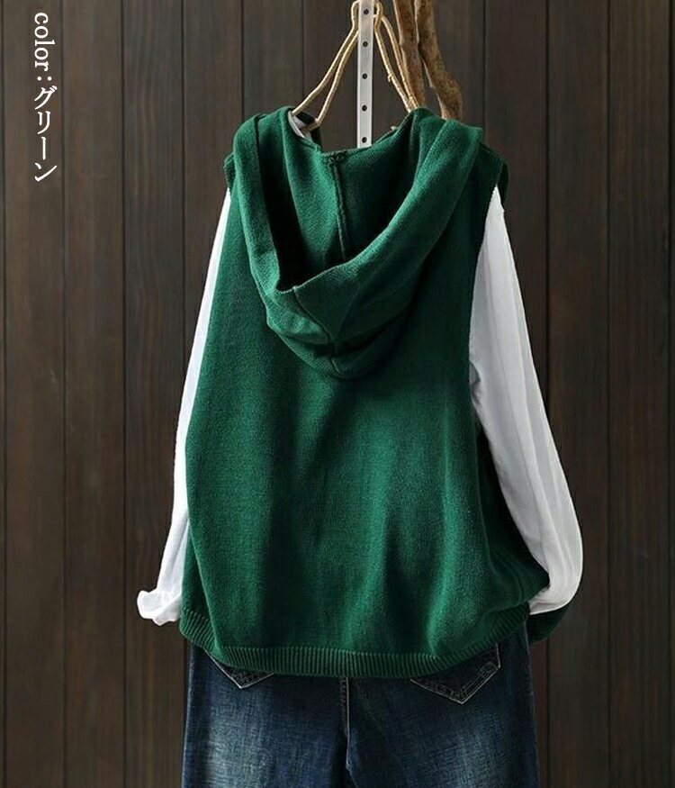 ニットベスト レディース フード付き 透かし編み ニット ベスト 春夏 フード付きニット ゆったり ノースリーブ 大きいサイズ 春ベスト 重ね着 春物 トップス レイヤード サマーニットベスト 袖なし サマーベスト お洒落 可愛い