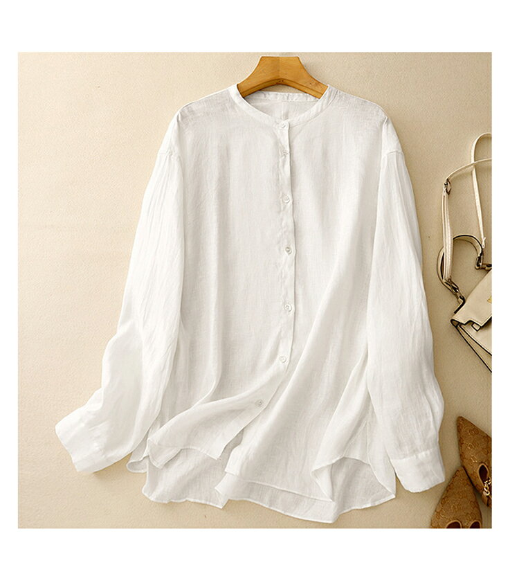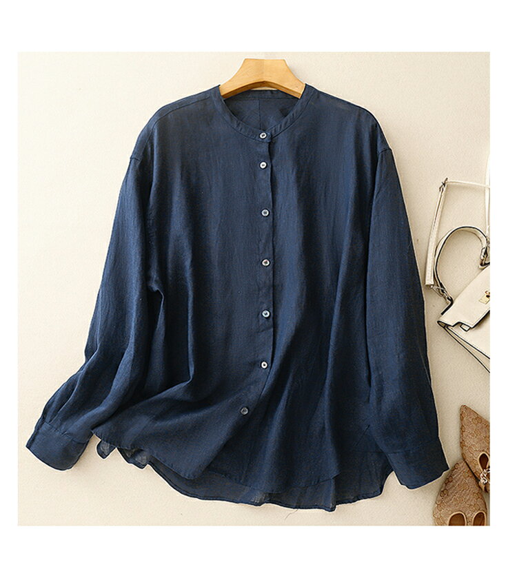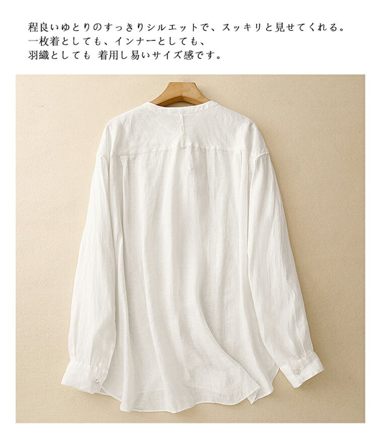バンドカラーシャツ レディース シャツ 長袖 コットン混 スタンドカラーシャツ 透け感 ゆったり シャツブラウス ミドル丈 シアー 羽織り 夏用 シアーシャツ uv 冷房対策 大きいサイズ 体型カバー 長袖シャツ 透け 着回し 無地 カジュアル シンプル