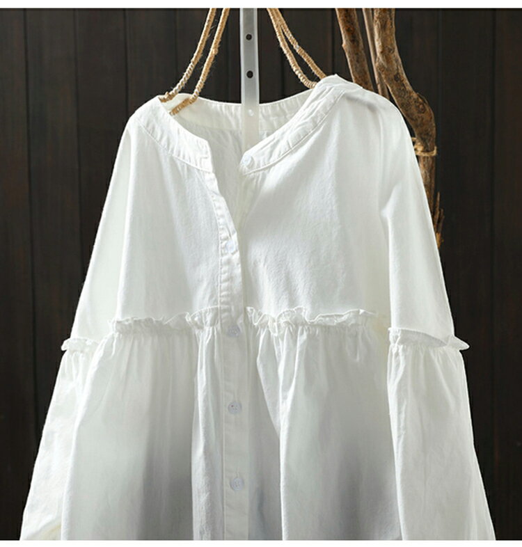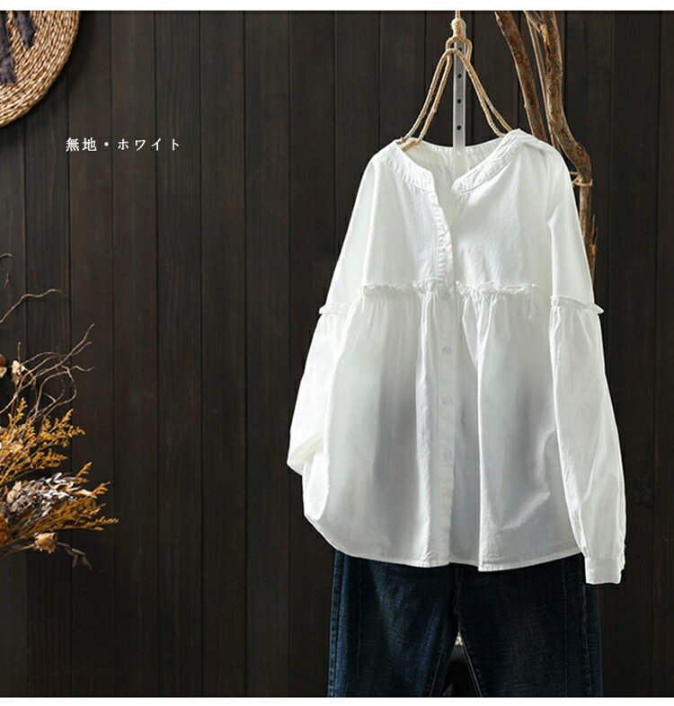 《マラソン前2枚で10%OFF★限定セール》バンドカラー シャツ レディース ブラウス ストライプ柄 立ち襟 バンドカラーシャツ チュニック 大人可愛い スタンドカラー 羽織り フリル ギャザー ペプラム スタンドカラーシャツ 柄シャツ 白シャツ ワイシャツ ゆったり かわいい