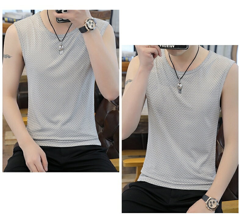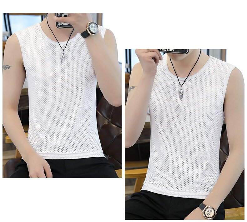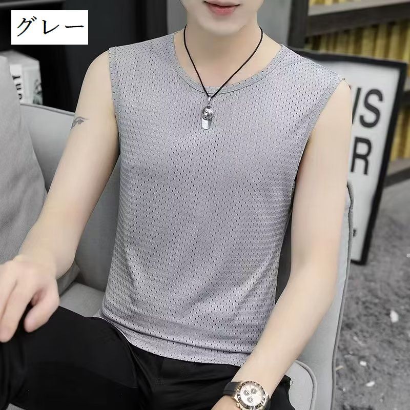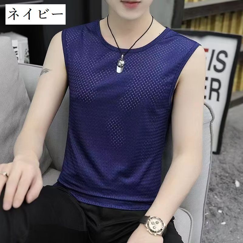 送料無料 タンクトップ メッシュ ノースリーブ トップス メンズ 男性 紳士 ラウンドネック 通気性 無地 単色 シンプル スポーツ フィットネス 大きいサイズ