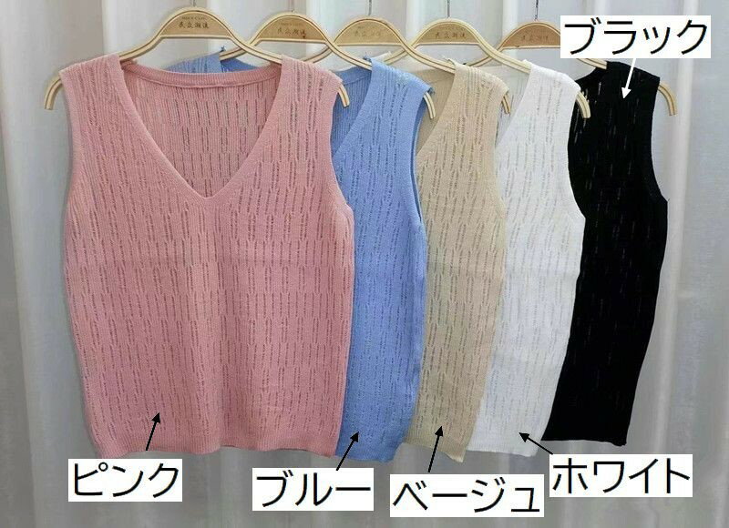 送料無料 タンクトップ ニット レディース トップス Vネック プルオーバー ノースリーブ ソリッドカラー 婦人服 女性用 シンプル カジュアル おしゃれ 普段着 デイリー 外出 お出掛け フリーサイズ