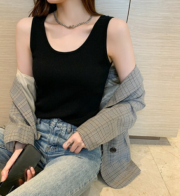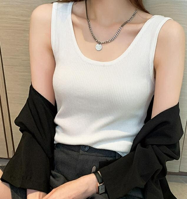 送料無料 タンクトップ レディース 女性 トップス インナー ノースリーブ Uネック リブ 無地 シンプル カジュアル 着回し お洒落 婦人服