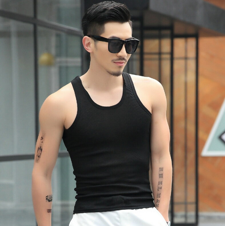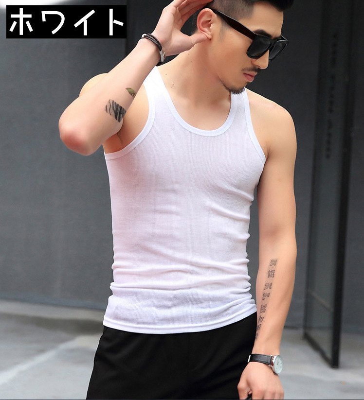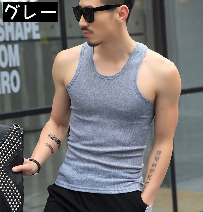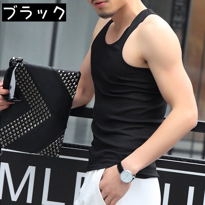 送料無料 タンクトップ トップス メンズ ラウンドネック ノースリーブ リブ 袖なし 大きめサイズ シンプル 無地 普段着 ジムウェア ランニング スポーツウェア