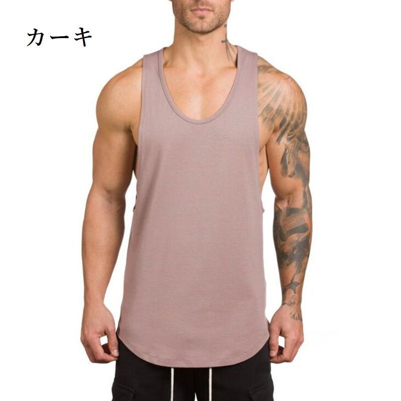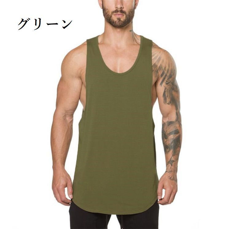 送料無料 タンクトップ 男性 メンズ トップス ランニングシャツ ラウンドネック ノースリーブ インナー スリット 脇広 ロング丈 レイヤード 重ね着 長め シンプル 無地 マッチョタンク スポーツ 筋トレ ボディービルダー ジム