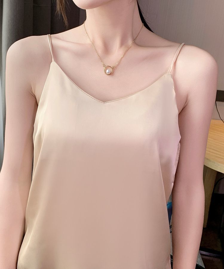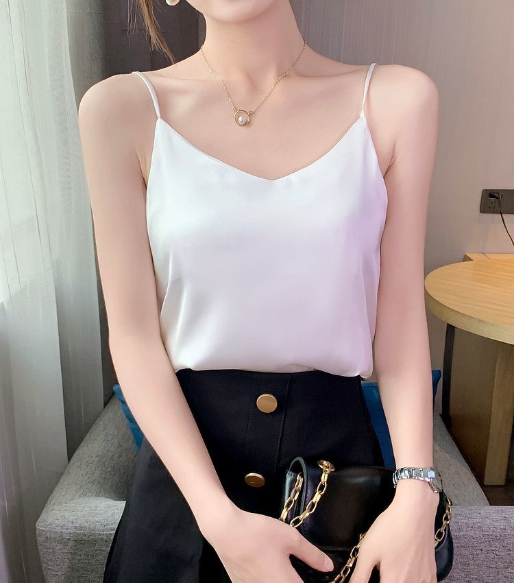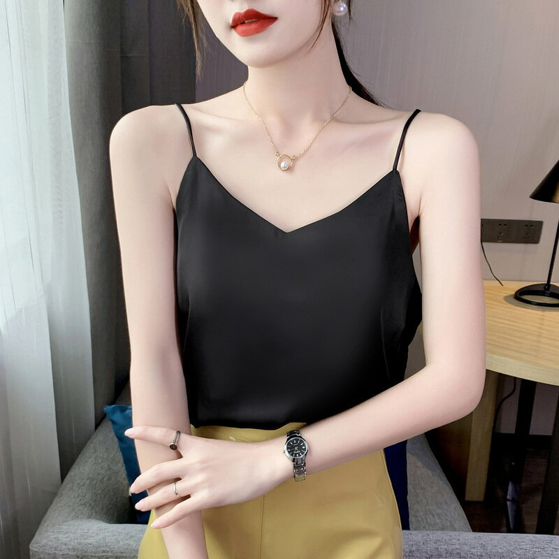 送料無料 キャミソール レディース トップス Vネック サテン調 細紐 着回し シンプル 無地 カジュアル おしゃれ 薄手 普段使い 肌見せ 光沢感