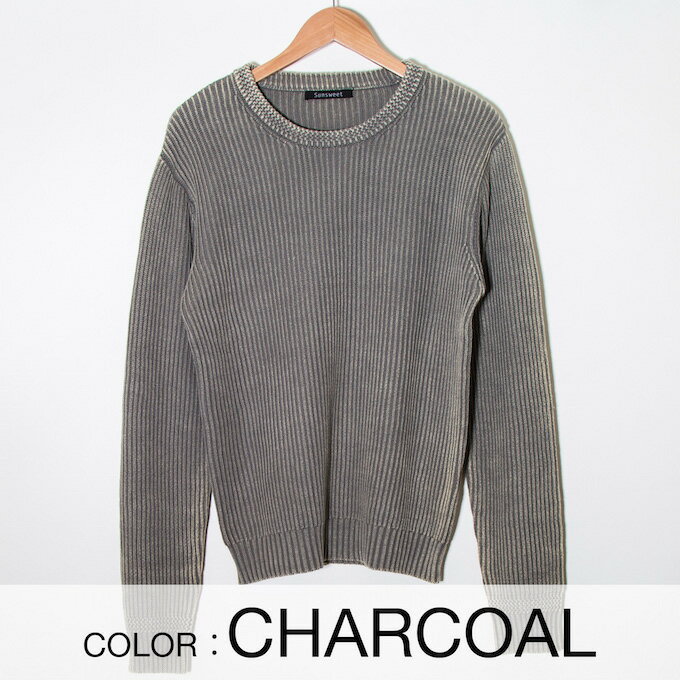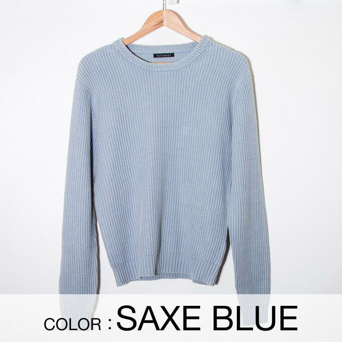 ウォッシュ加工 サーフ メンズ ニット セーター 薄手ニット サックス インディゴ サーフ系 ビター系 クルーネック 春 春物 春服 韓国ファッション レディース