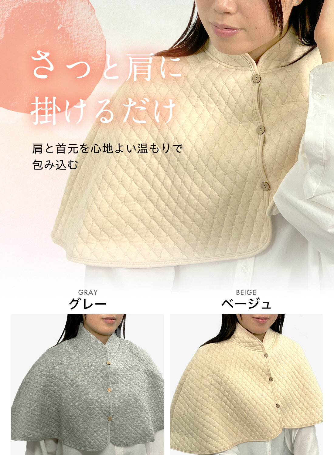 【期間限定980円オフ】 ルームウェア 肩掛け 裏地フリースでぽかぽか暖かい キルティング 綿100% 3層構造 ポンチョ おやすみベスト 肩当 肩あて 肩 首 首筋 背中 保温 暖める ケープ フリース 防寒 部屋着 冷気 寝具 防寒対策 軽量 レディース 【グレー ベージュ 2カラー】