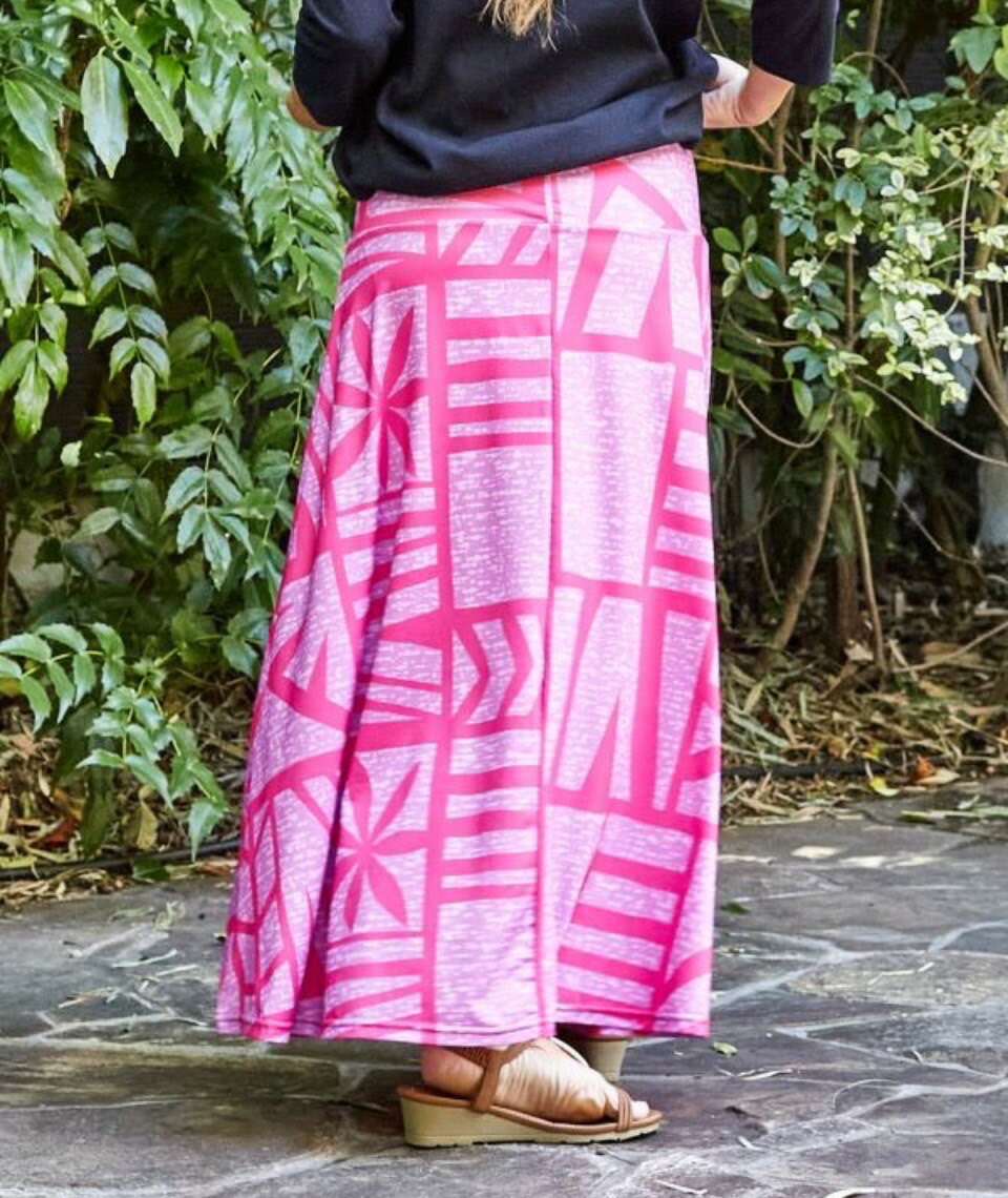 マウナロア Maunaloa ロングスカート OceanBlueBird フラ リゾート服 柄スカート ハワイアン 美シルエット 形が綺麗 おしゃれ シワになりにくい 着痩せ 大人服 レディース マキシスカート 衣装 M L