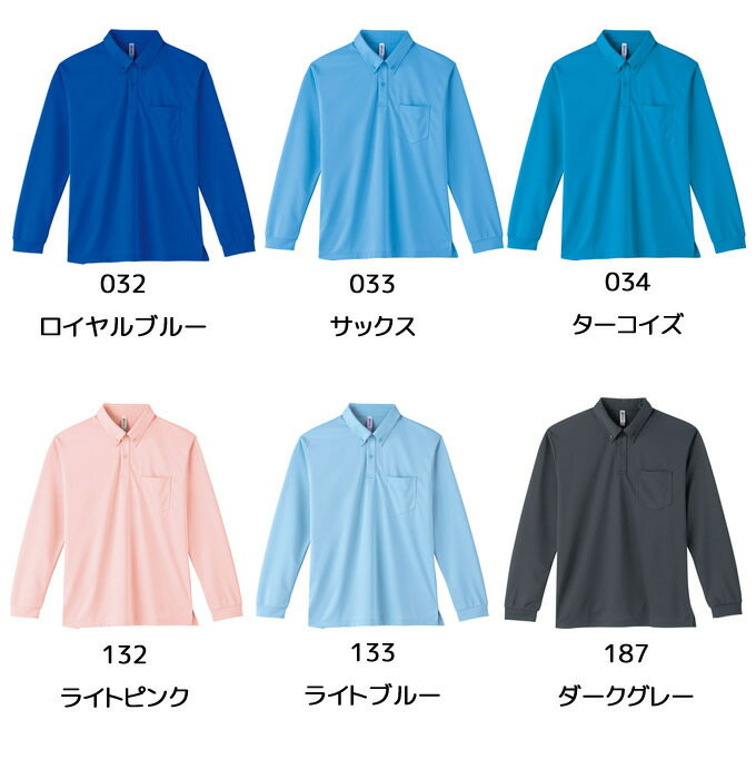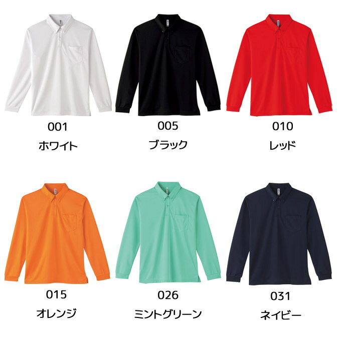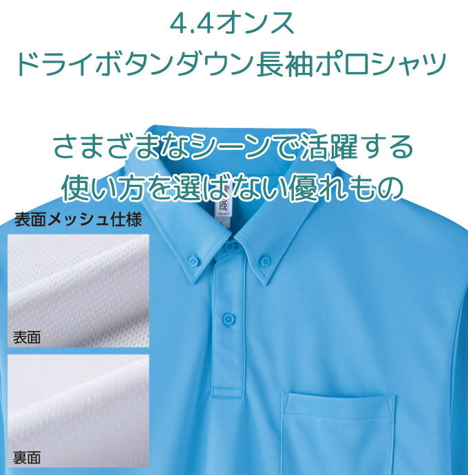 ドライ 長袖ポロシャツ ボタンダウン 刺繍 名入れ オーダーメイド ネーム入れ 4.4オンス メンズ レディース兼用 無地 ポケット付き 00314-ABL
