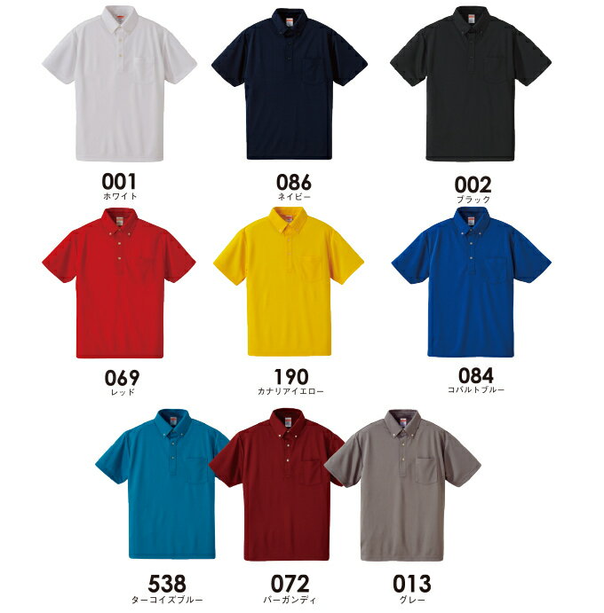 4.1オンス ドライポロシャツ 名入れ 刺繍 ボタンダウン ポケット付き オーダーメイド 刺繍ネーム入れ 吸水速乾 無地 メンズ レディース兼用 5921