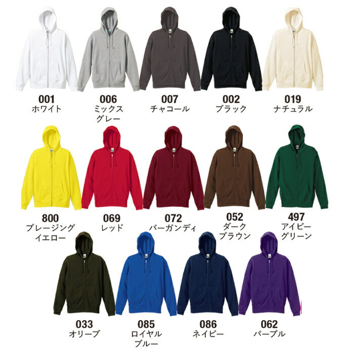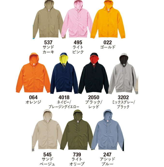 ジップパーカー 刺繍 名入れ メンズ レディース 無地 中厚手 スウェット オーダーメイド ネーム入れ 10オンス 裏パイル 5213