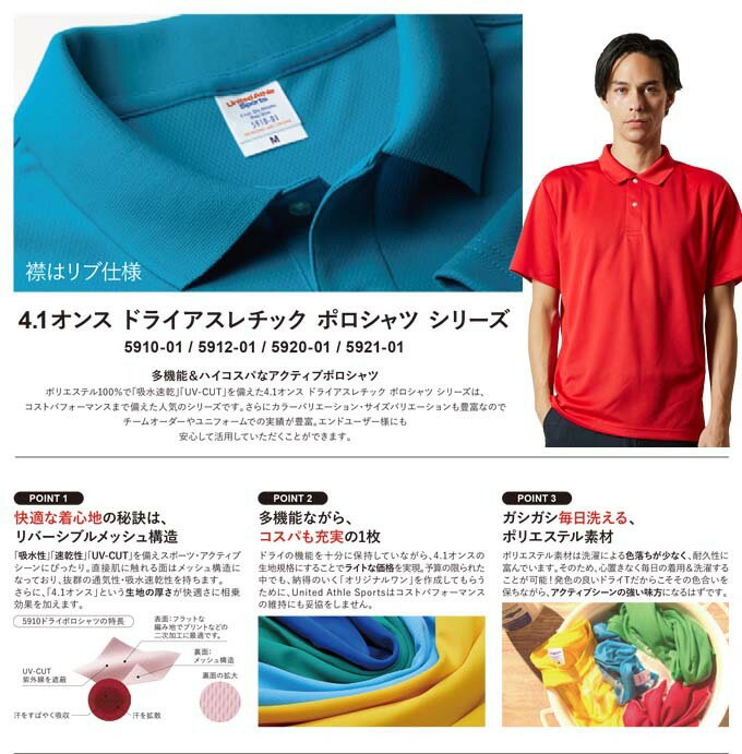 ドライアスレチックポロシャツ ポケット無し 吸水速乾 無地 メンズ レディース 名入れ対応 刺繍 オーダーメイド ネーム入れ ユナイテッドアスレ5910