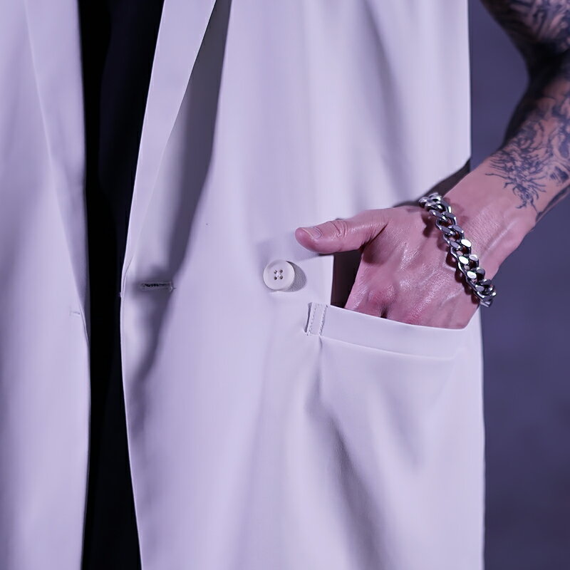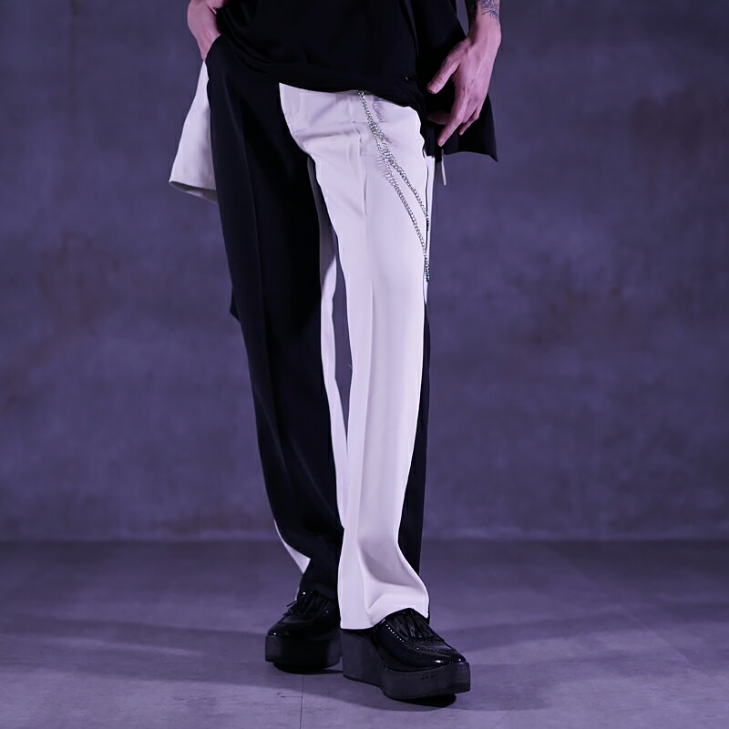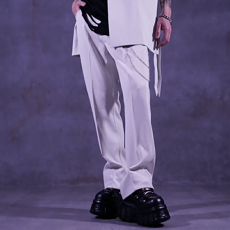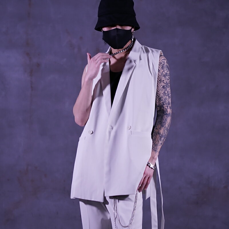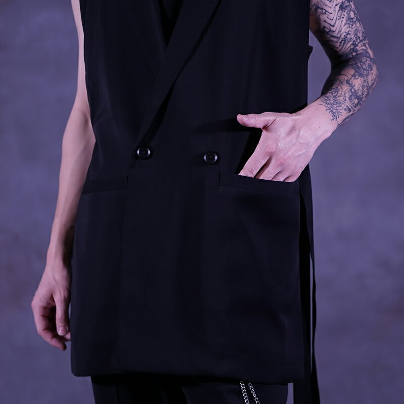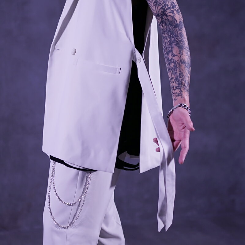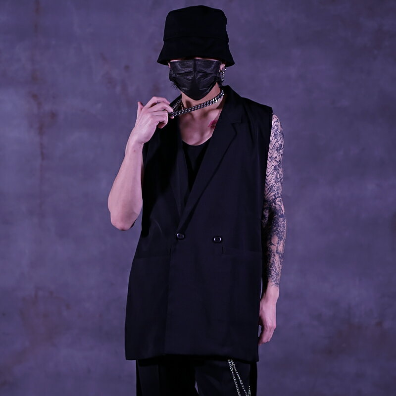 セットアップ メンズ 上下セット 2点セット ジレ ベスト ロング丈 ロングジレ ベスト ホスト V系 ヴィジュアル系 ファッション オーバーサイズ 黒 ブラック ブラックコーデ モード系 白 ホワイト スラックス スーツ フレアパンツ パンク ロック オシャレ 原宿系 オズ Oz