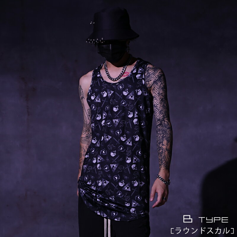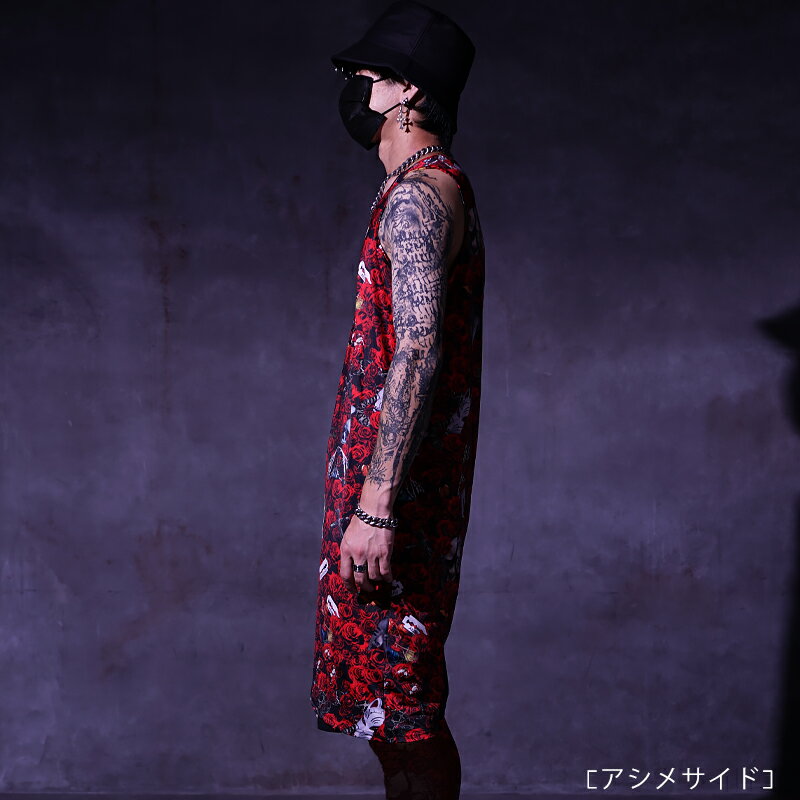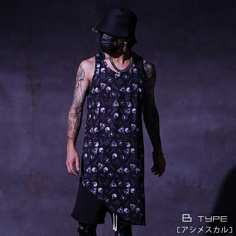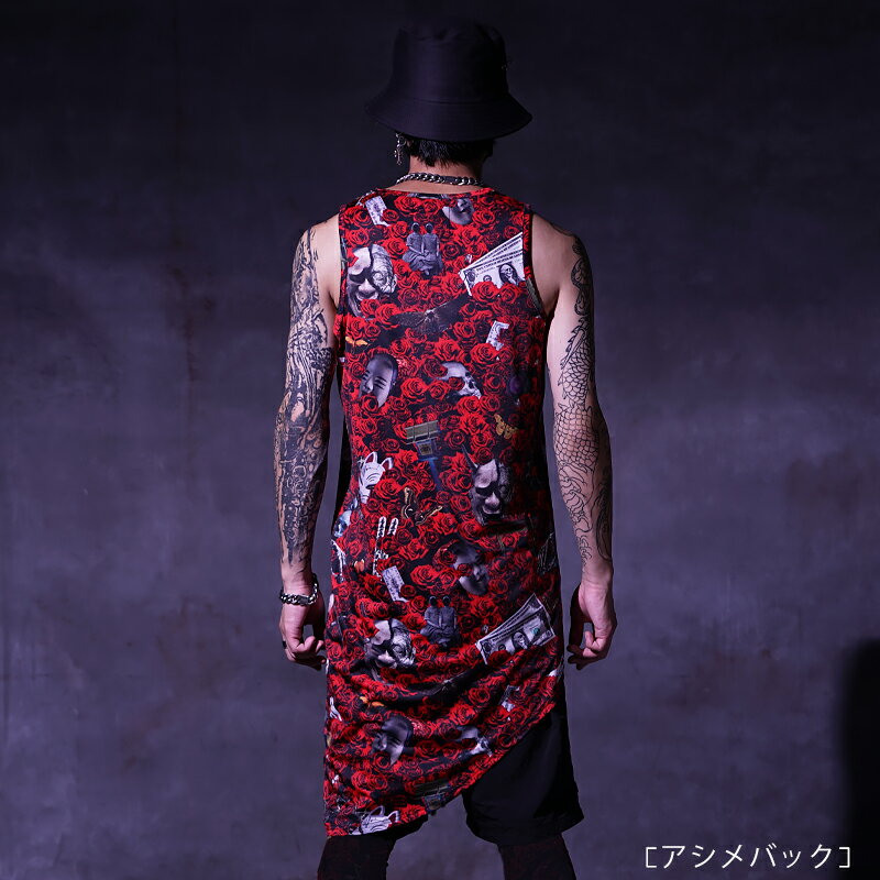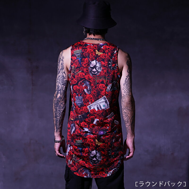 【送料無料】タンクトップ メンズ ロング丈 ロングタンクトップ レディース ブランド インナー 派手 個性的 原宿系 V系 ヴィジュアル系 ストリート ファッション スカル ドル 薔薇 バラ ユニセックス パンク ロック オシャレ カットソー お洒落 オルターベノム ALTER VENOMV