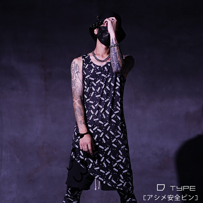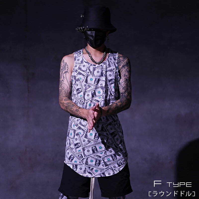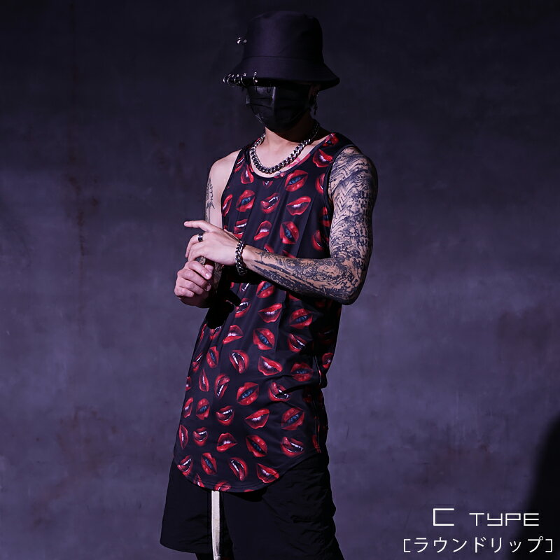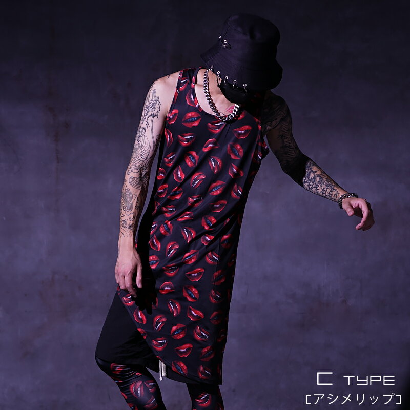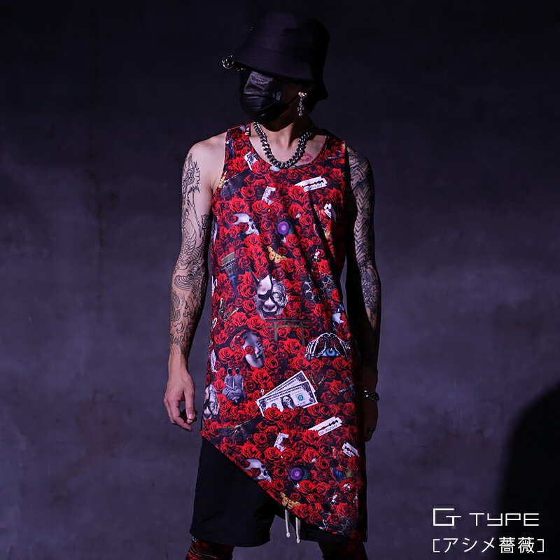 【送料無料】タンクトップ メンズ ロング丈 ロングタンクトップ レディース ブランド インナー 派手 個性的 原宿系 V系 ヴィジュアル系 ストリート ファッション スカル ドル 薔薇 バラ ユニセックス パンク ロック オシャレ カットソー お洒落 オルターベノム ALTER VENOMV