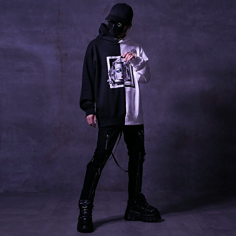 【送料無料】パーカー プルオーバーパーカー 奇抜 個性的 派手 スウェットパーカー メンズ レディース オーバーサイズ 大きいサイズ 原宿系 V系 ヴィジュアル系 ストリート系 ファッション プリントパーカー パンク ロック オシャレ オルターベノム ALTER VENOMV