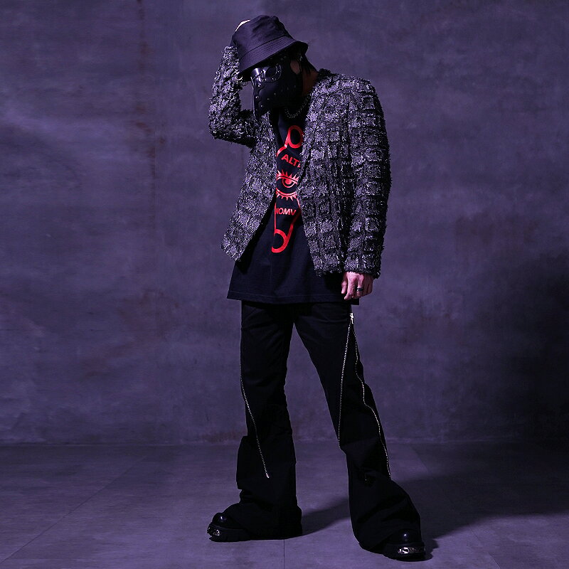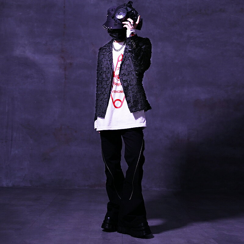 【送料無料】ジャケット メンズ テーラードジャケット ショート丈 ホスト 闇系 病み系 個性的 V系 地雷系 サブカル地雷 ヴィジュアル系 ビジュアル系 ダメージ ファッション パンク ロック ゴスロリ 黒 派手 衣装 Oz オズ