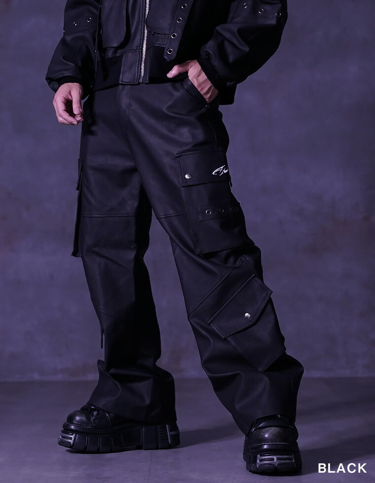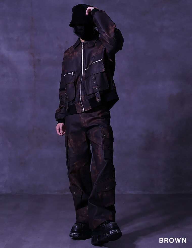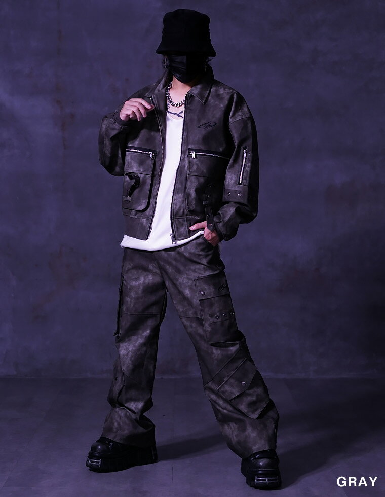 【送料無料】セットアップ 上下セット ジャケット フェイク レザージャケットショート丈 カーゴパンツ フェイク レザージャケット ワイドパンツ ストリート系 ヴィジュアル系 ビジュアル系 服 オーバーサイズ ファッション ロック パンク ホスト Vホス Oz オズ
