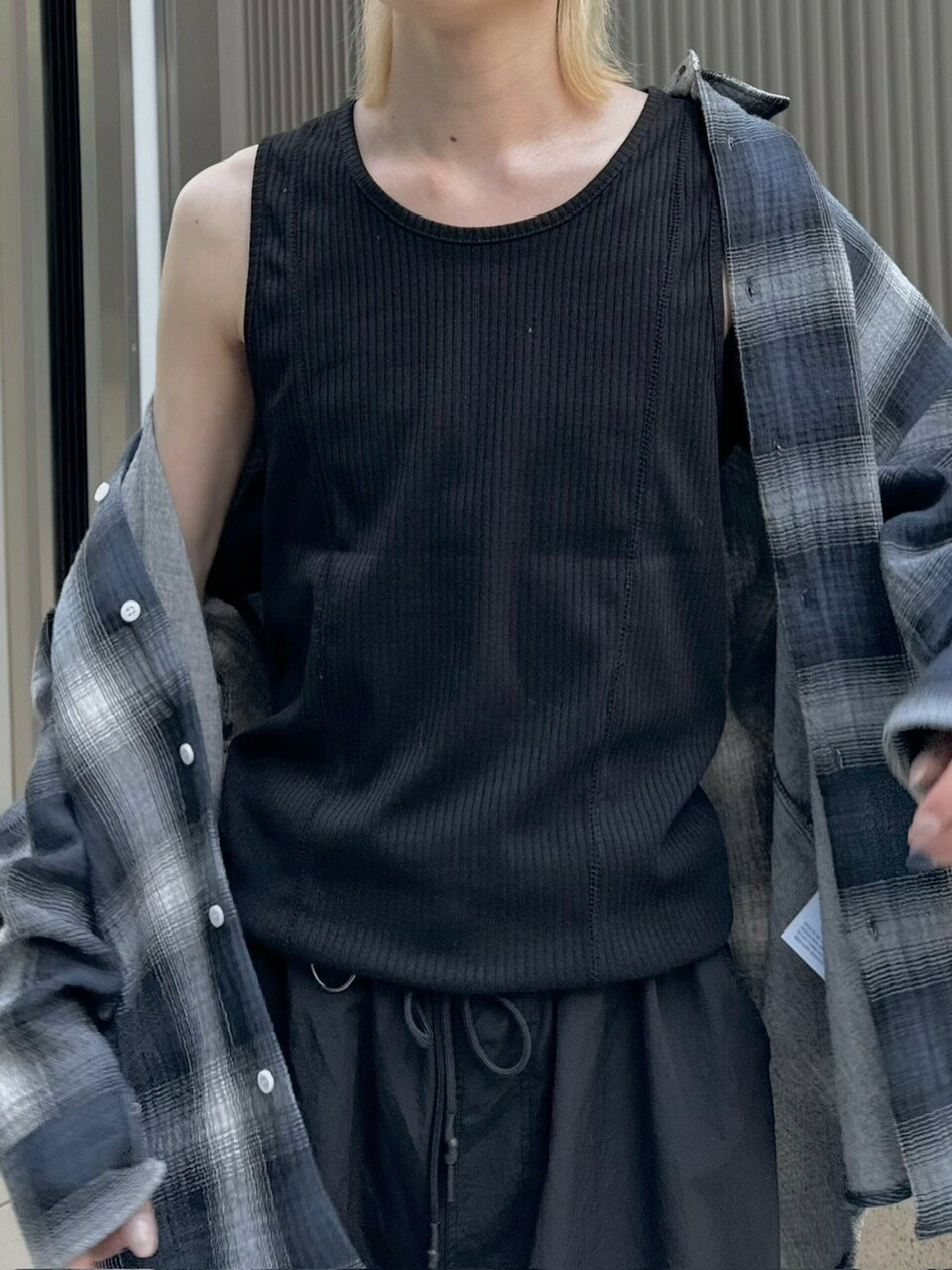 正規品【Chikashitsu + stitch rib sleeveless (3color)Chikashitsu + チカシツプラス チカシツ チカプラ トップス ノースリーブ スリーブレス タンクトップ シンプル 夏 カジュアル ストリート 韓国ファッション 韓国ストリート メンズ レディース ユニセックス