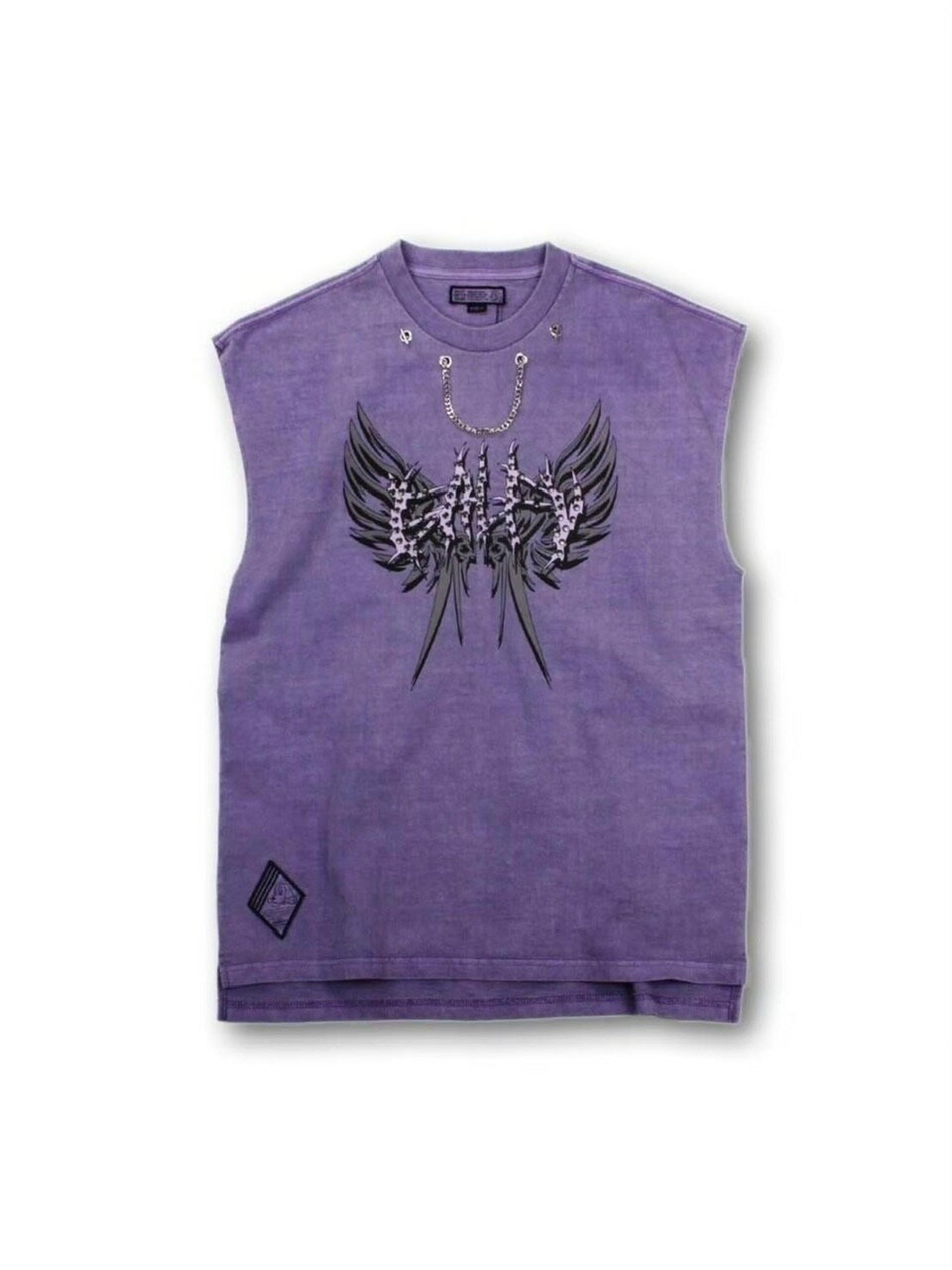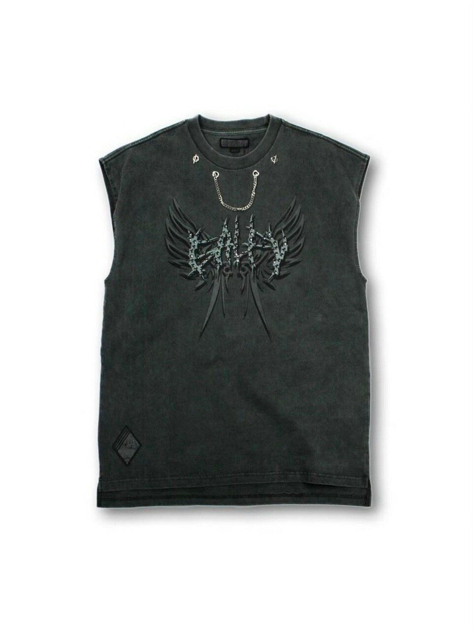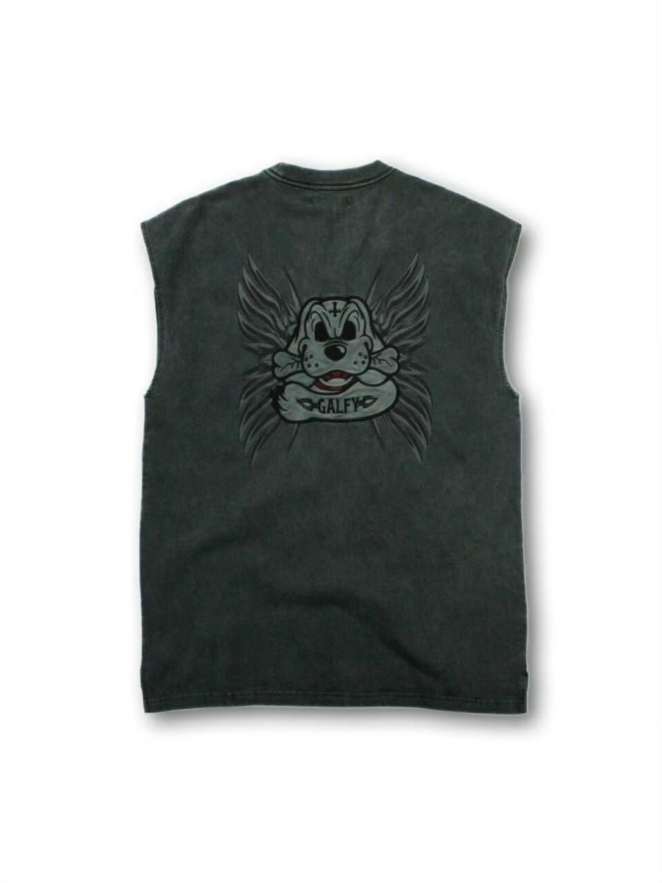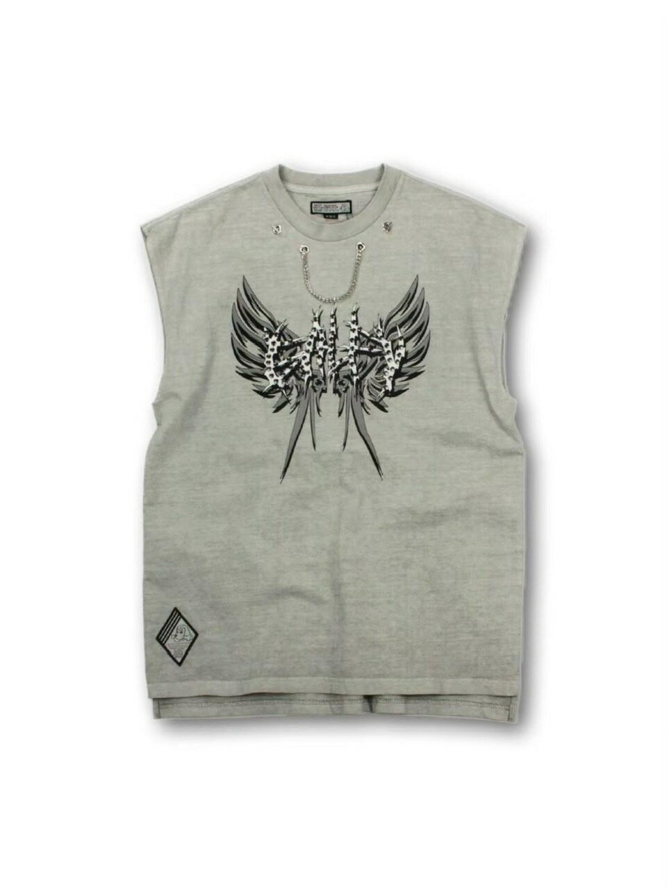 正規品【GALFY ゴリ厨二タンク】ストリートファッション GALFY ガルフィー ゴリ厨二タンク ロゴTシャツ 刺しゅうロゴ プリントTシャツ 袖なしトップス チェーン付きトップス ノースリーブ スリーブレス オーバーサイズ ストリートブランド