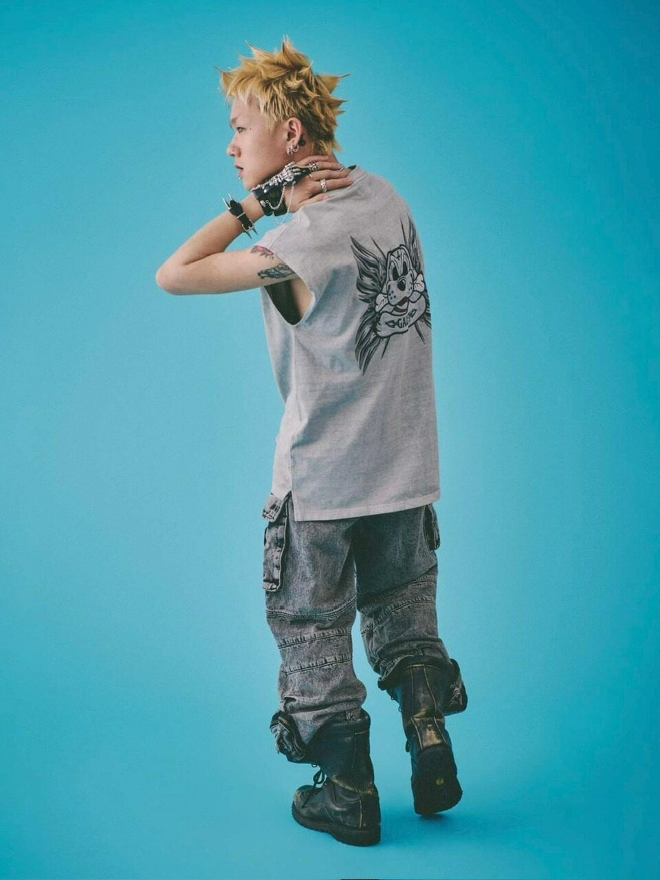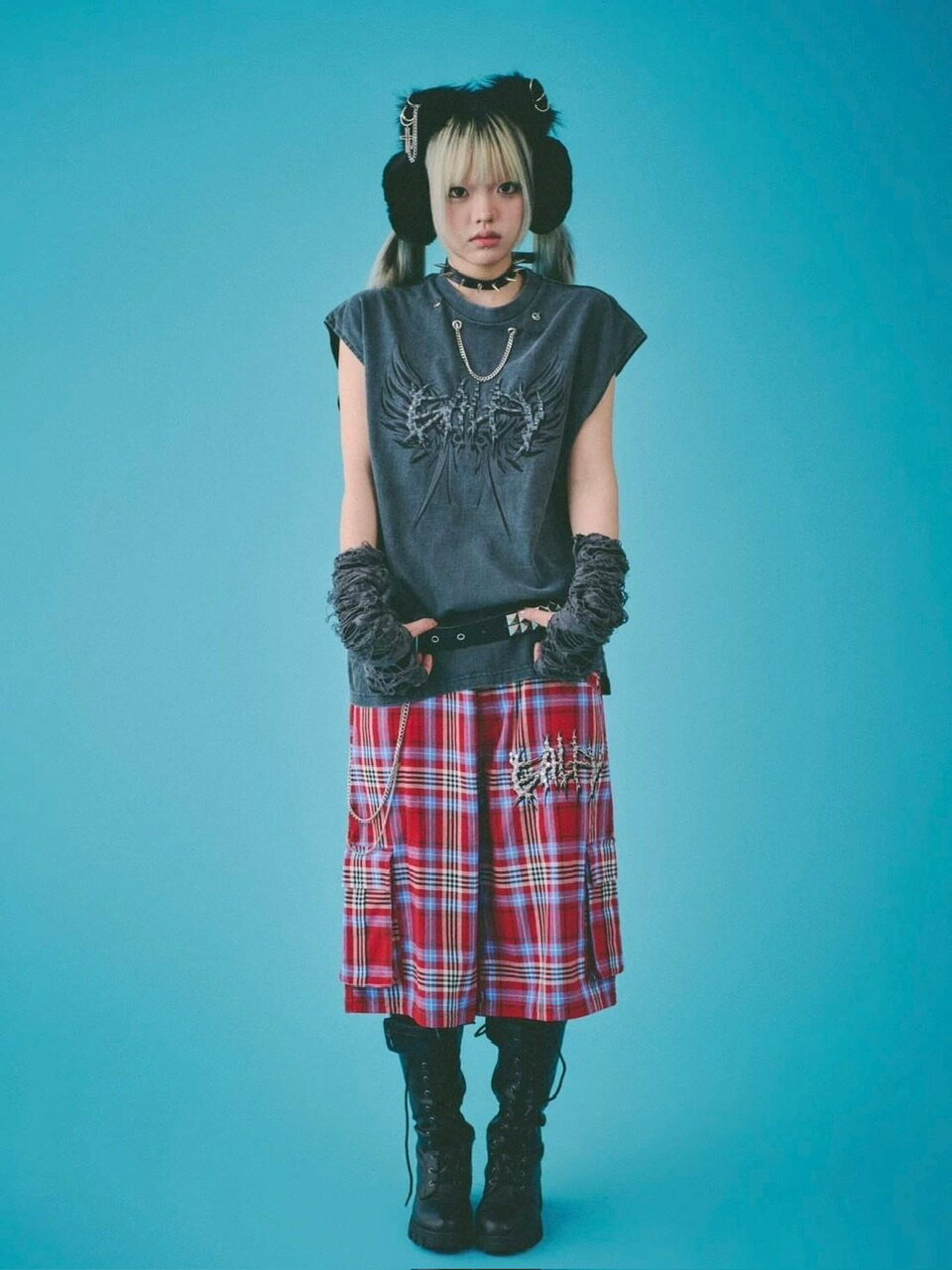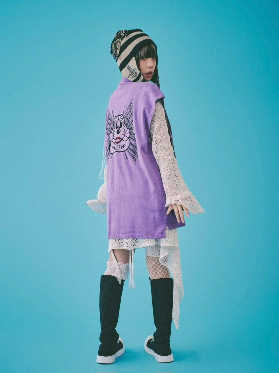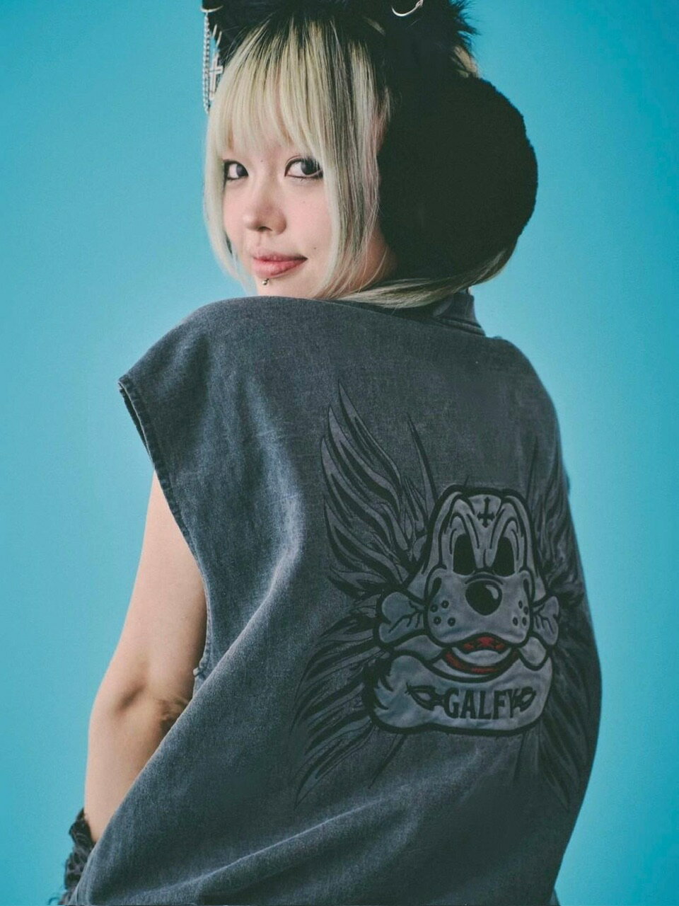 正規品【GALFY ゴリ厨二タンク】ストリートファッション GALFY ガルフィー ゴリ厨二タンク ロゴTシャツ 刺しゅうロゴ プリントTシャツ 袖なしトップス チェーン付きトップス ノースリーブ スリーブレス オーバーサイズ ストリートブランド