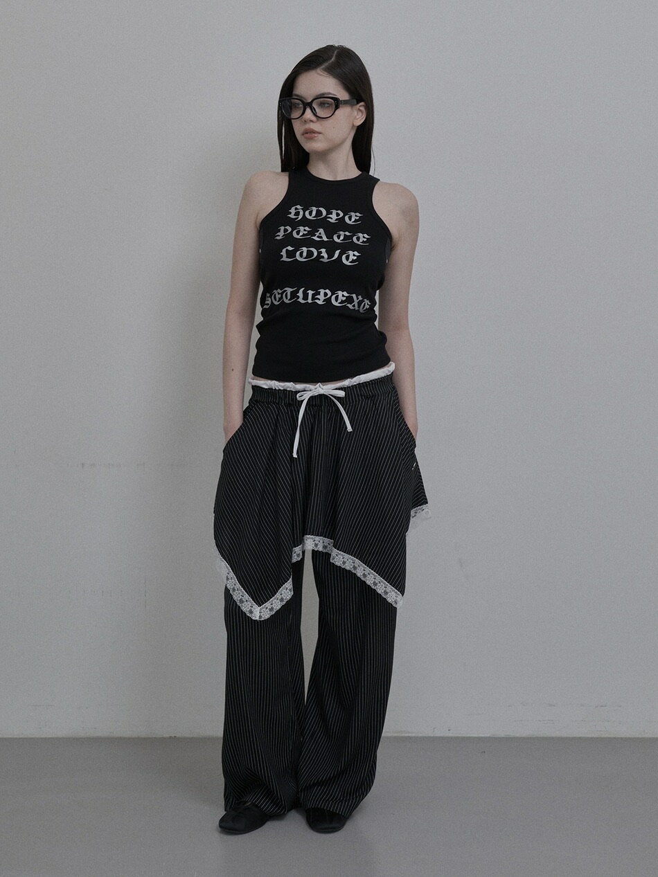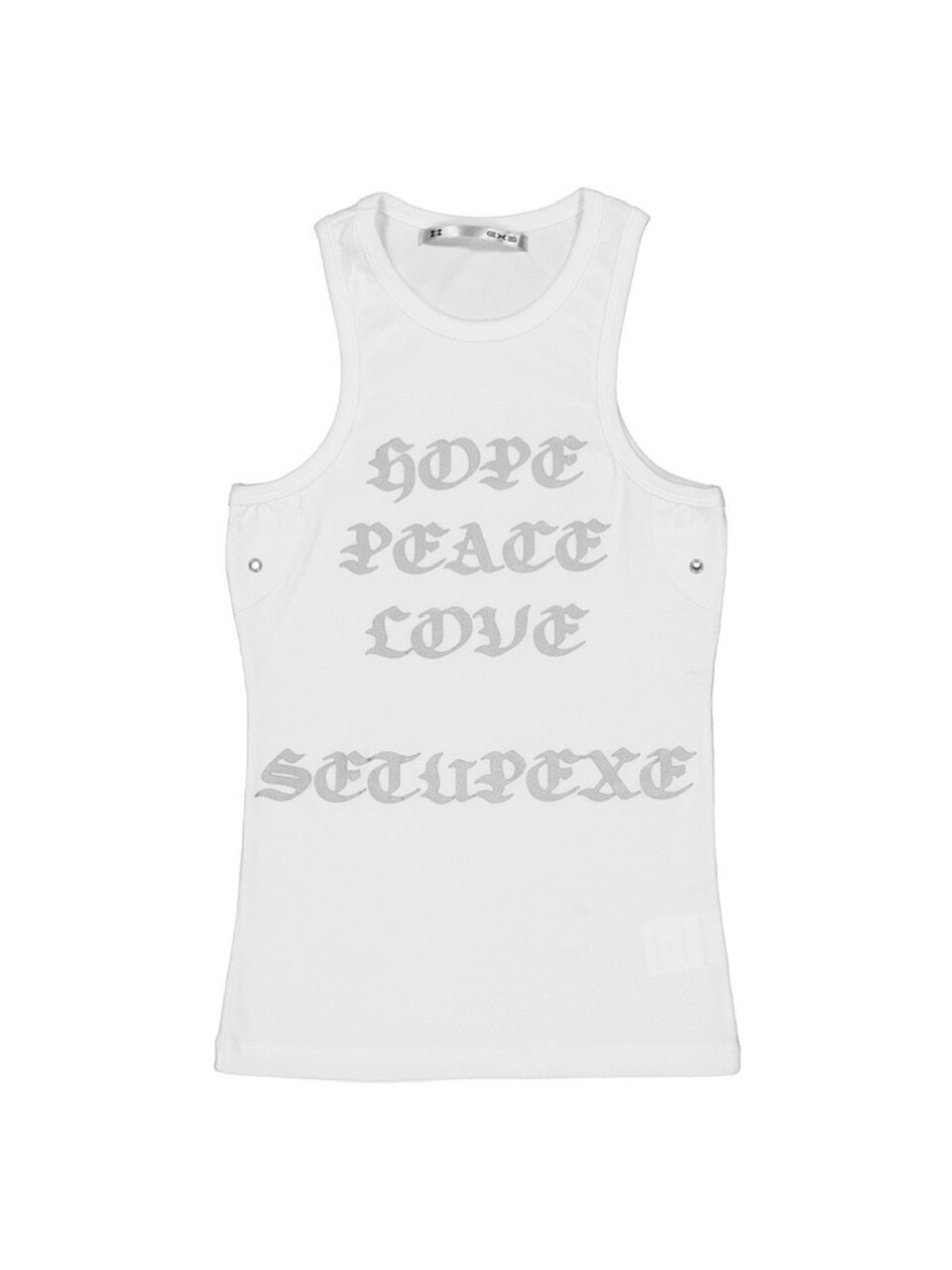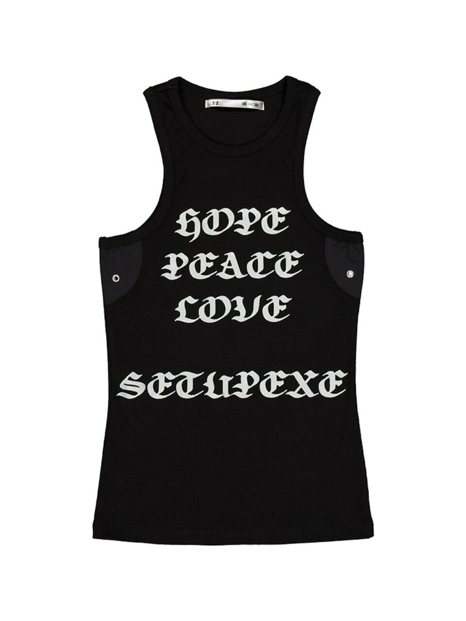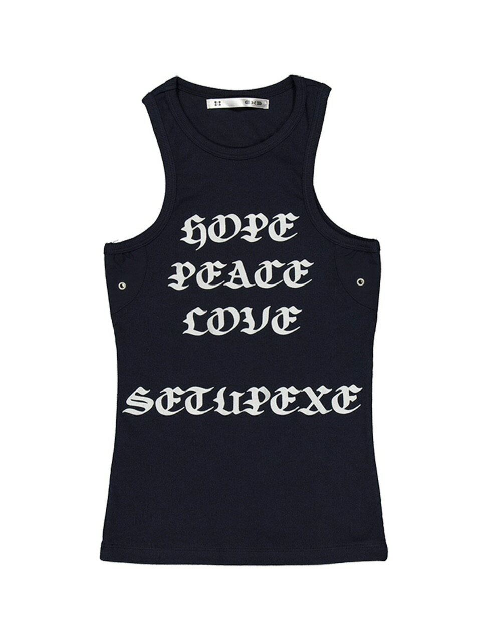正規品【SETUP‐EXE HOPE / PEACE / LOVE SLEEVELESS】韓国ブランド SETUP‐EXE セットアップ エグゼ アメリカンスリーブタンクトップ ロゴタンクトップ 袖なしトップス スリーブレス ノースリーブ 韓国ファッション 韓国ストリート ストリートファッション