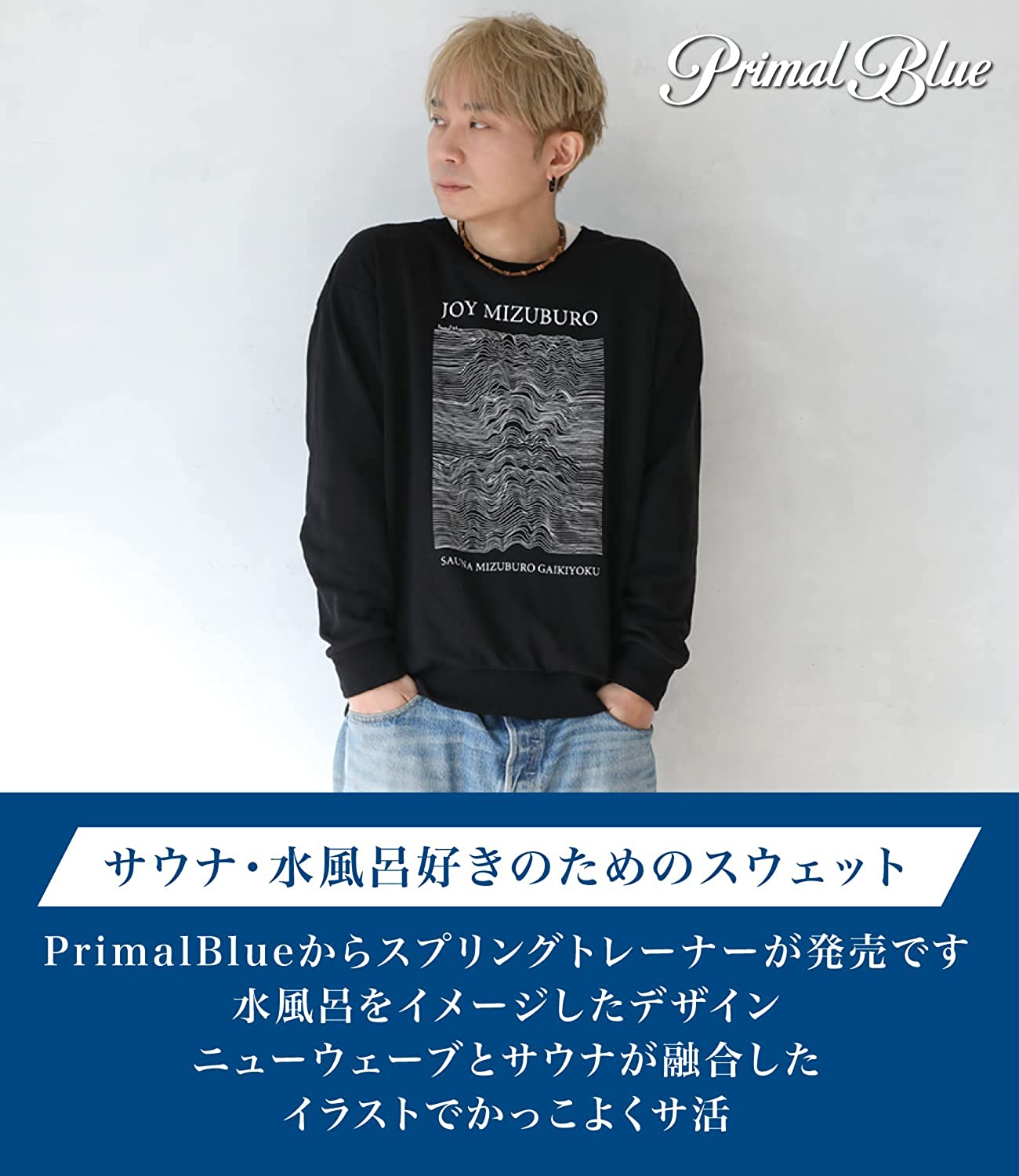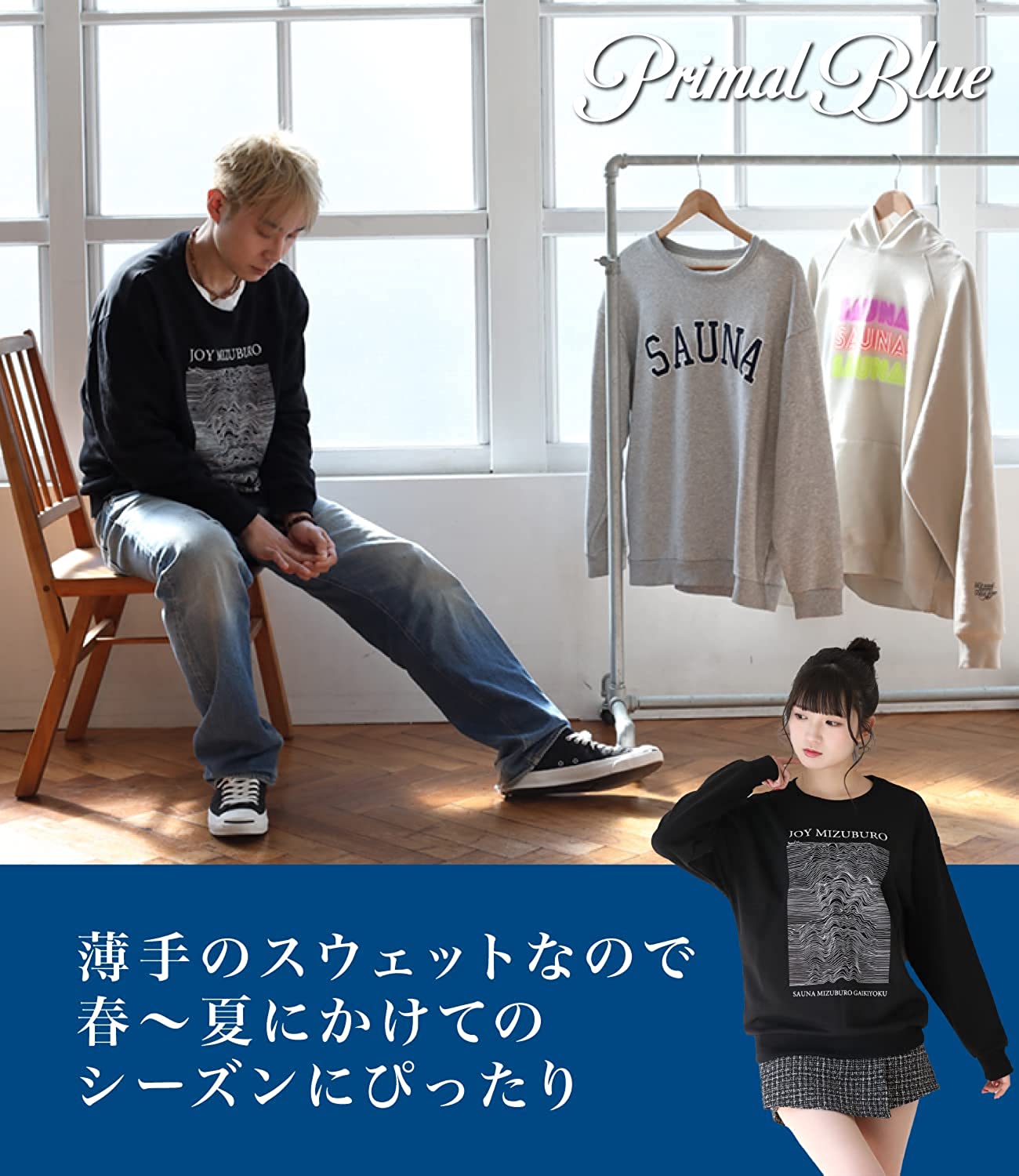 スプリングスウェット 水風呂 サウナ メンズ レディース sauna サウナスウェット サウナグッズ (ブラック)(サイズ:M/L/XL) トレーナー 音楽 スウェット 春物 JOYMIZUBURO PrimalBlue プライマルブルー ロック 黒 薄手 サ活 サウナー サウナ男子 サウナ女子 ストリート