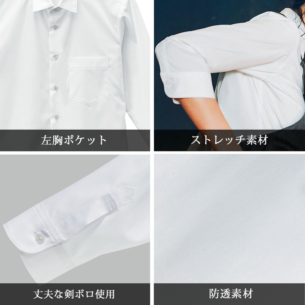 送料無料 ストレッチ素材 七分袖 シャツ ユニフォーム 男女兼用 黒 白 シャツ インナー
