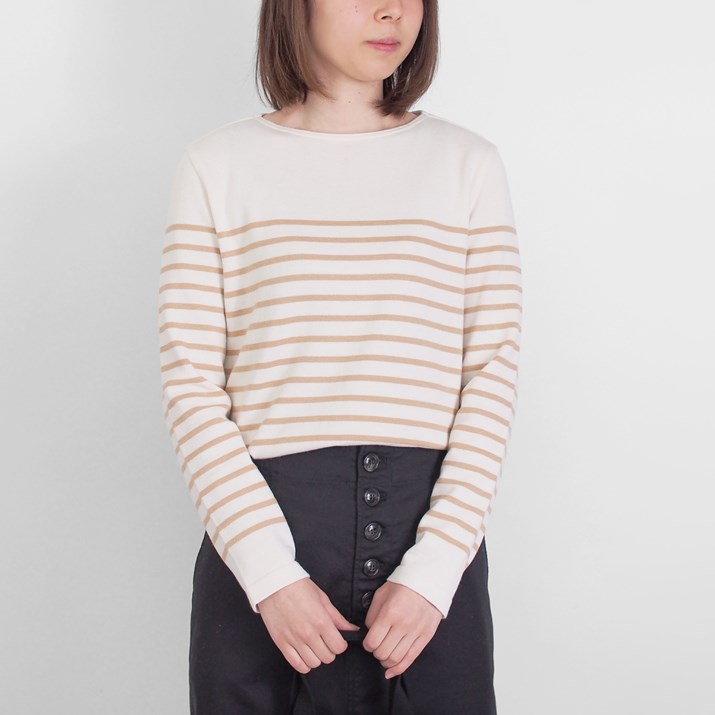 PRODIGAL パネルボーダー 長袖 ニット レディース 秋 秋冬 日本製 M L ボーダー カットソー ボートネック シンプル 綿 カシミア 五泉ニット コットンカシミヤパネルボーダーニット