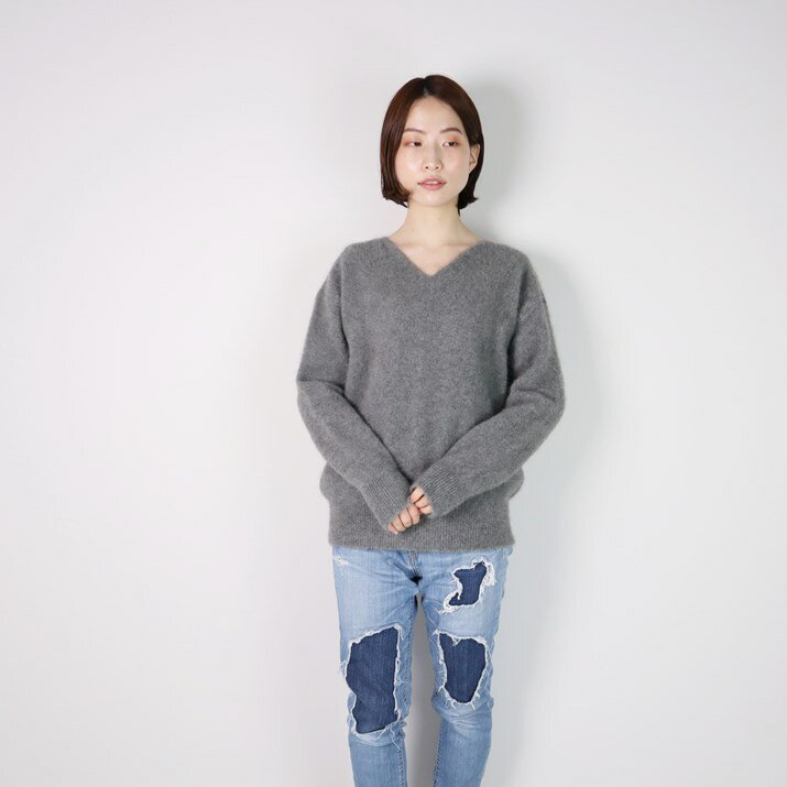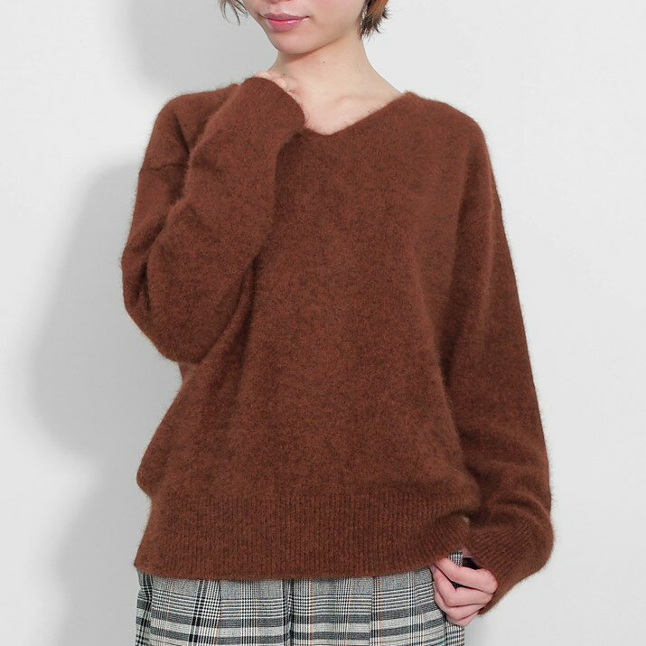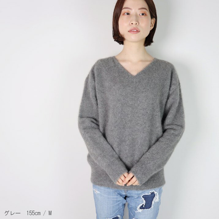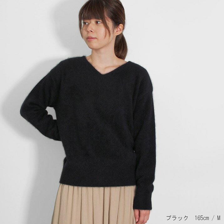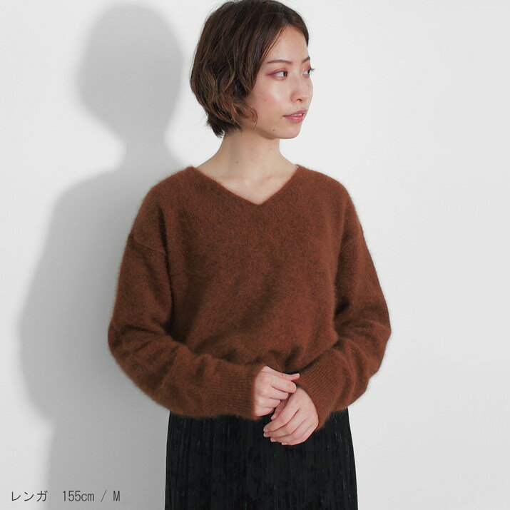PRODIGAL ニット ラクーン Vネック セーター 秋 冬 日本製 M L ラクーンニット トップス レディース ファー シャギー ラクーンVネックプルオーバー