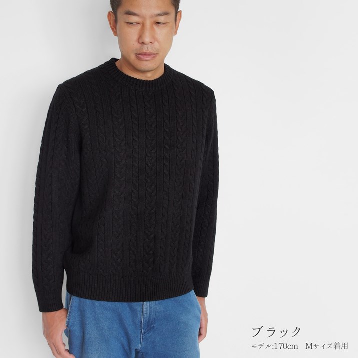 PRODIGAL メンズ ケーブル ニット カシミヤ 100% 日本製 M L セーター カシミア 紳士 クルーネック トップス 五泉ニット カシミヤ100%メンズ細ケーブル柄セーター