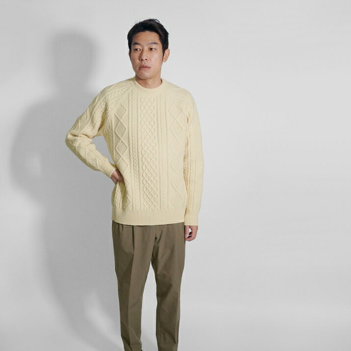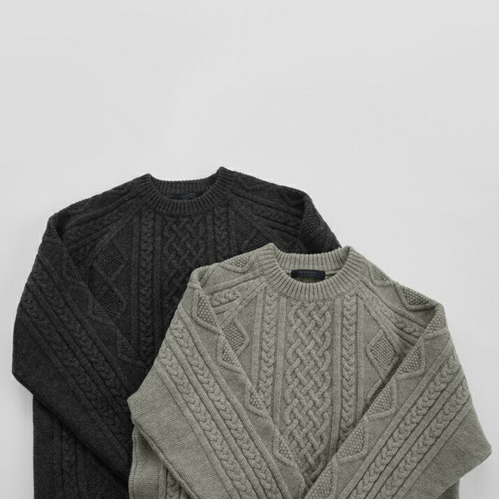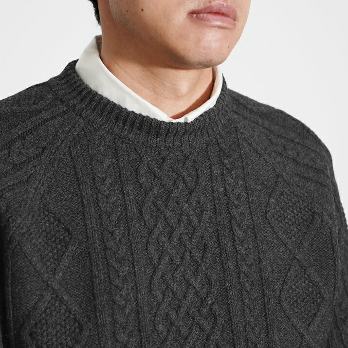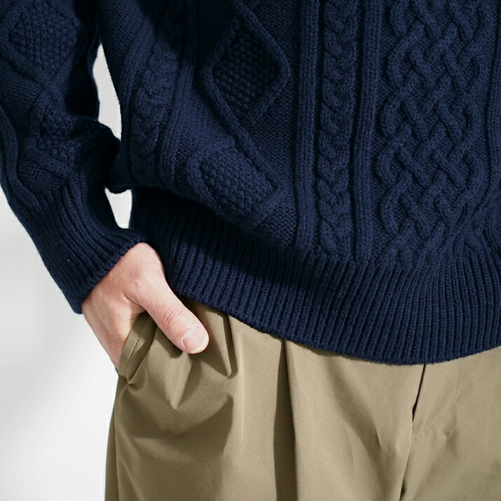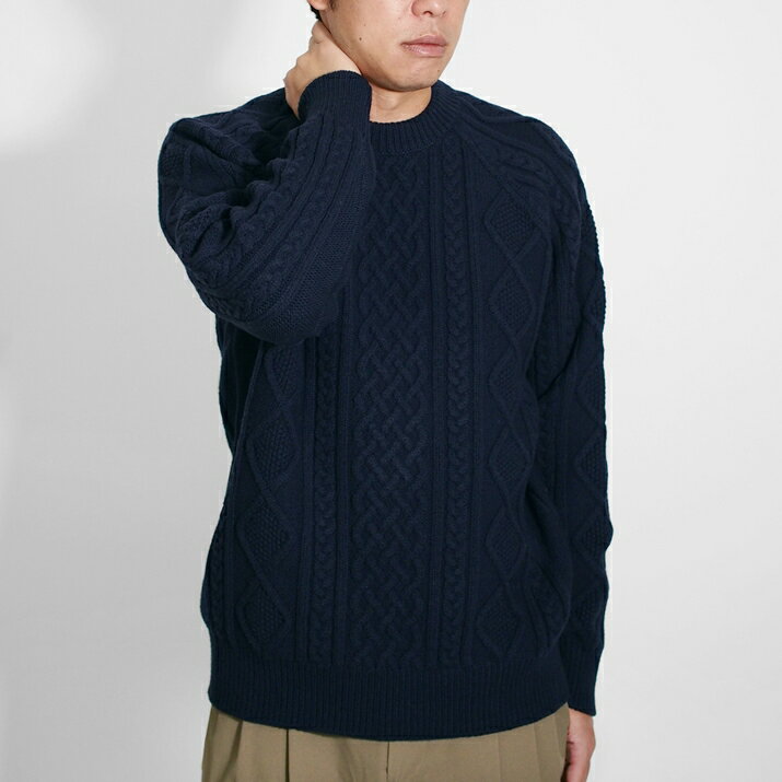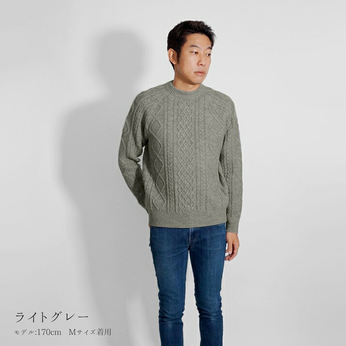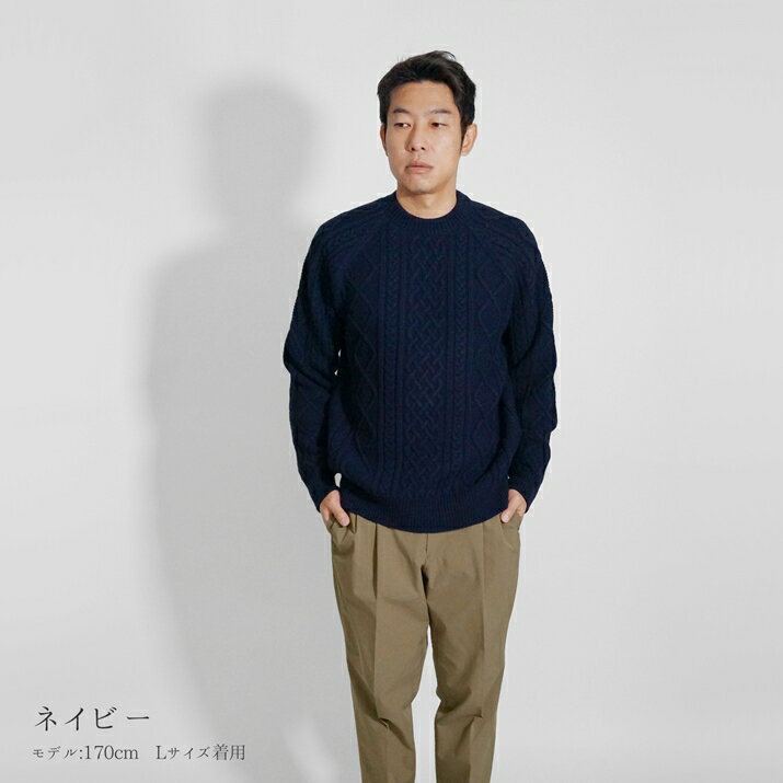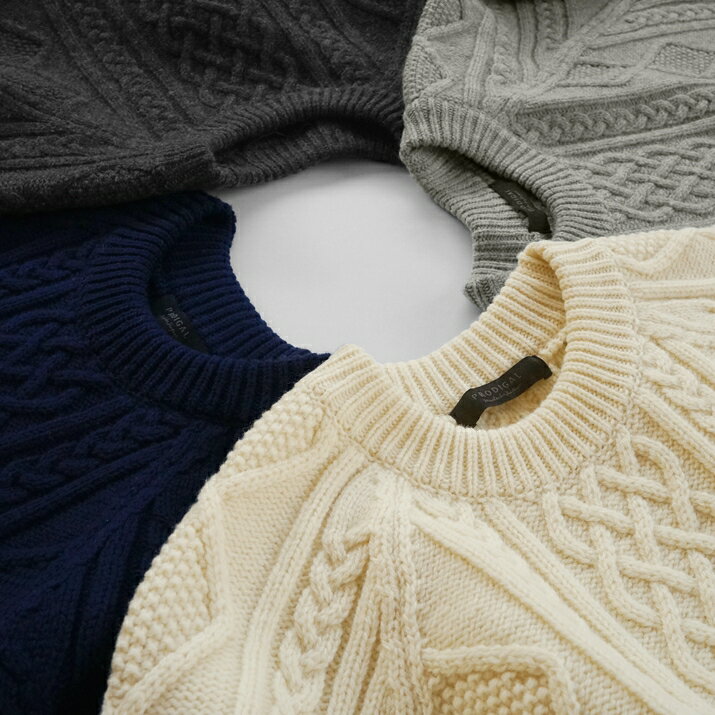 PRODIGAL ニット メンズ ケーブル ウール 100% M L 日本製 セーター クルーネック トップス 長袖 秋 冬 五泉ニット メンズアラン柄プルオーバー