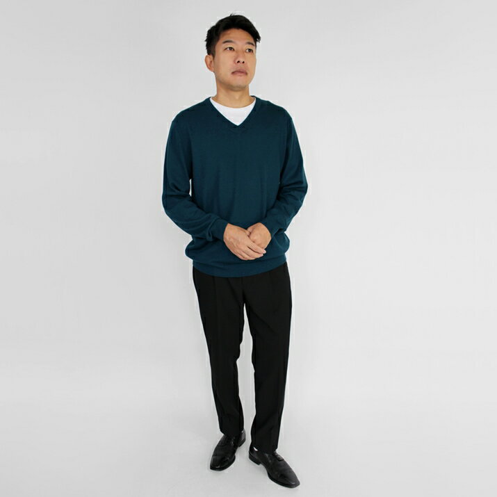 \10%OFFクーポン対象/ PRODIGAL メンズ セーター vネック ウール100% 日本製 M L 秋 冬 ニット 長袖 無地 五泉ニット ウール100%メンズVネックプルオーバー