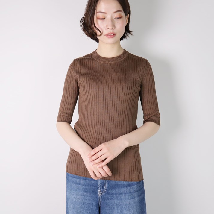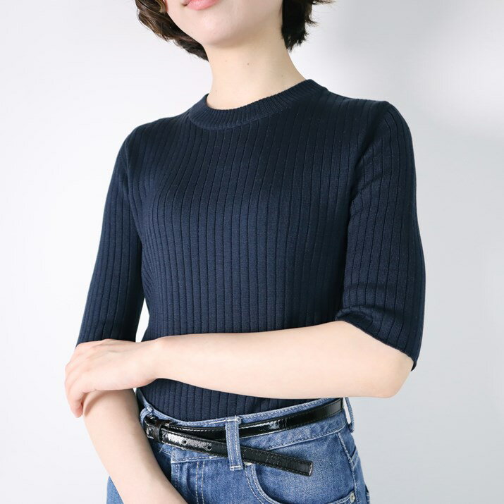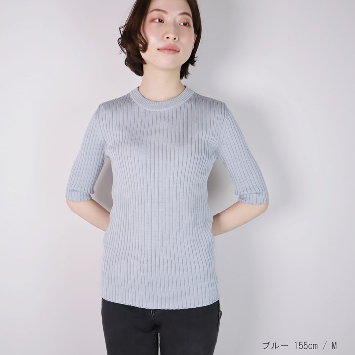 PRODIGAL 洗える シルク100% リブニット 半袖 プルオーバー 日本製 レディース M L サマーニット 春 夏 クルーネック シンプル 五泉ニット ウォッシャブルシルク100%リブプルオーバー
