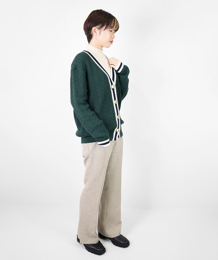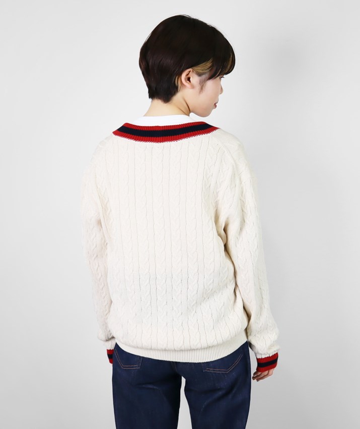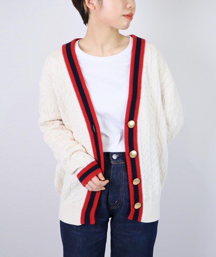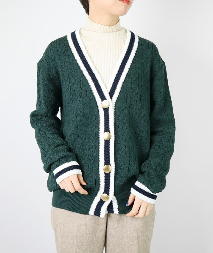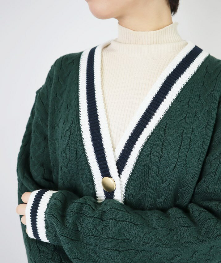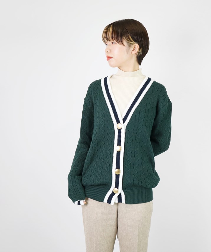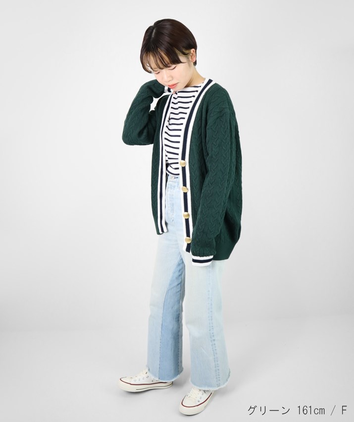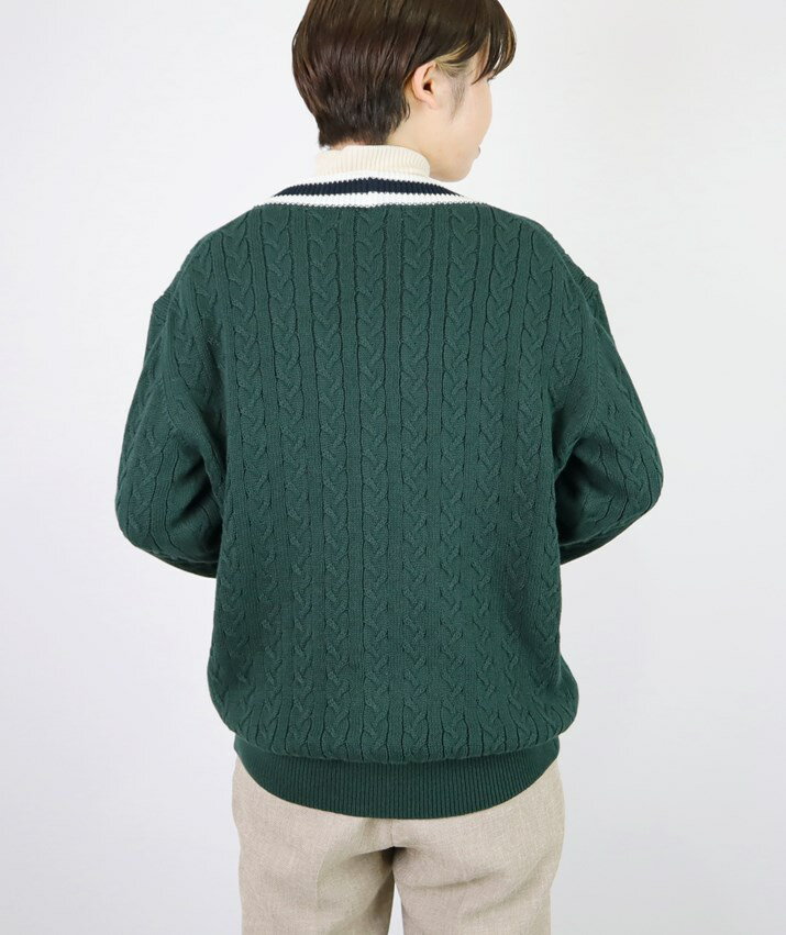 PRODIGAL カーディガン レディース 春 秋 日本製 フリーサイズ Vネック ニット ケーブル柄 長袖 綿 羽織り 五泉ニット チルデンカーディガン