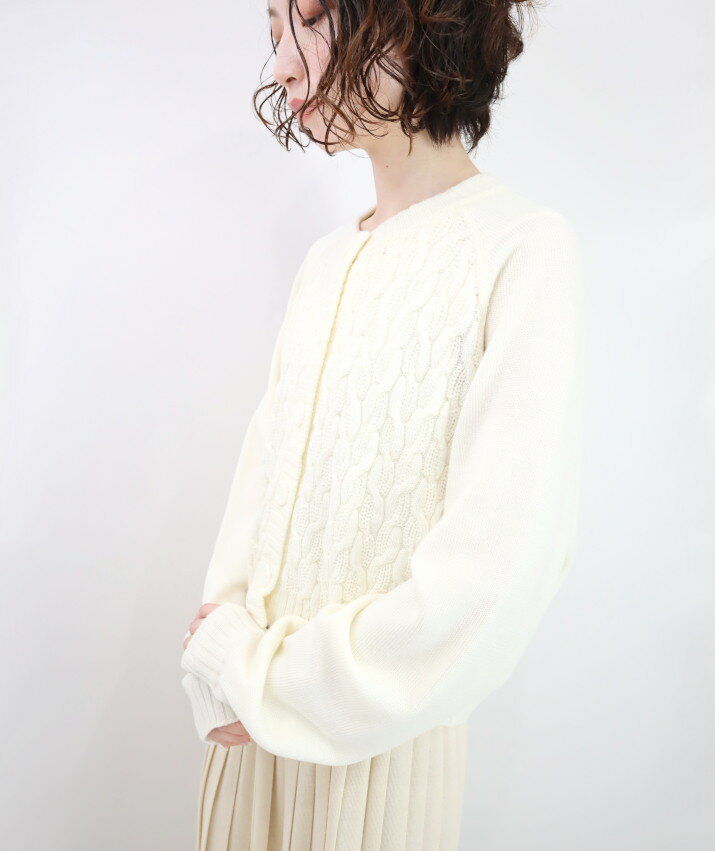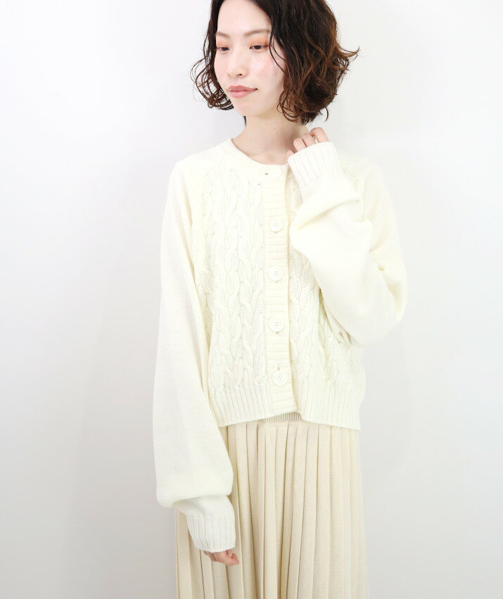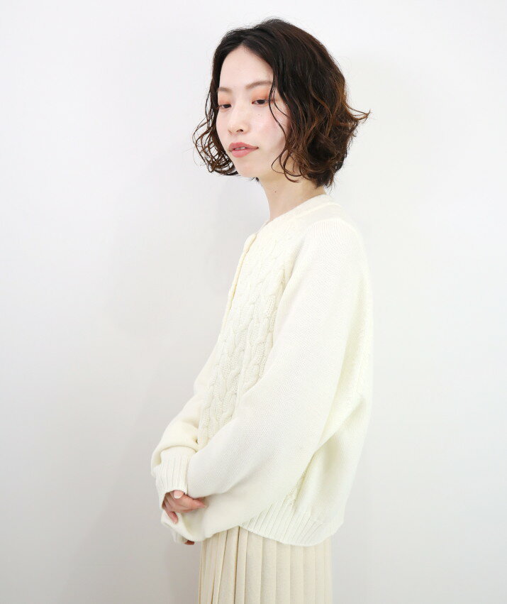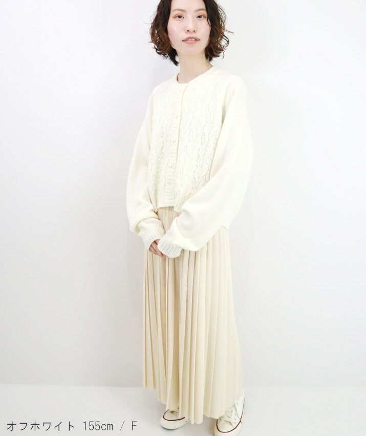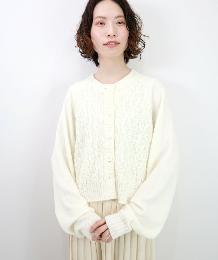 nacnarumade ウール100% ケーブル柄 ショートカーディガン 日本製 レディース ニット ショート丈 カーデ 羽織り 長袖 厚手 秋冬 冬 サステナブル アップサイクル 五泉ニット