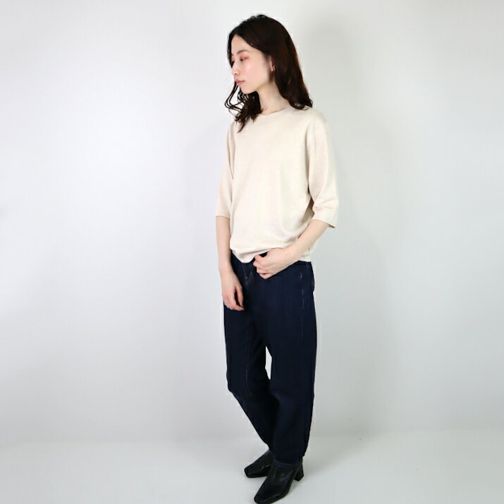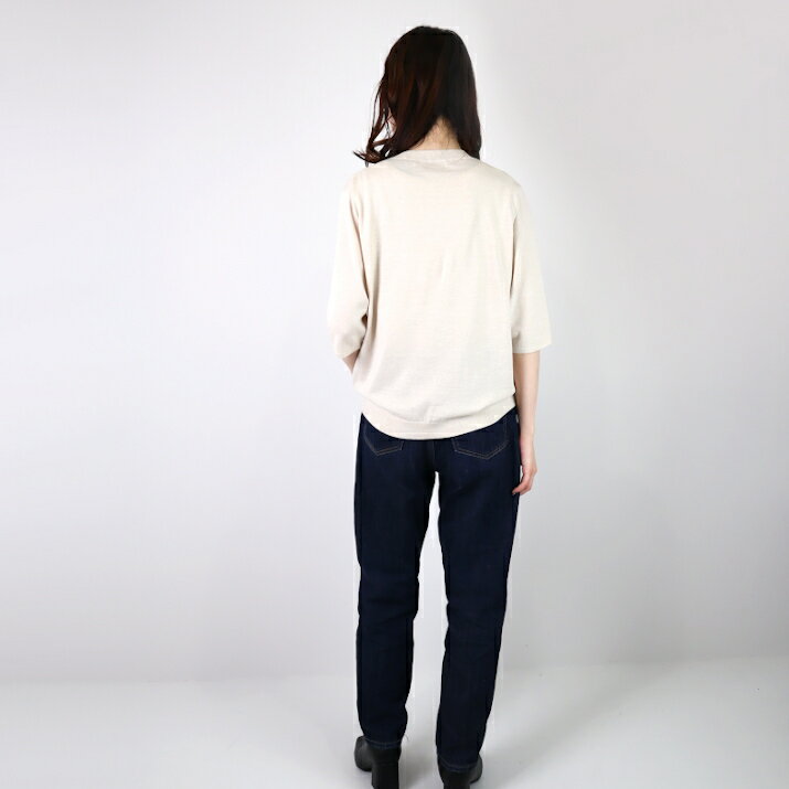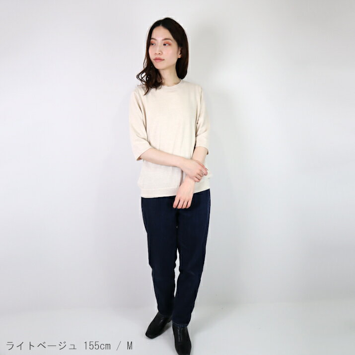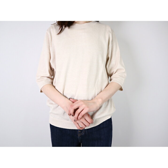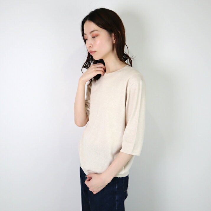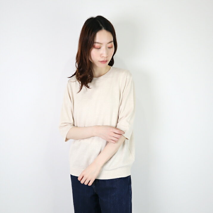 nacnarumade 綿レーヨンシルク Tシャツ 日本製 レディース ニット プルオーバー 五分袖 サマーニット 薄手 春夏 秋 サステナブル アップサイクル 五泉ニット