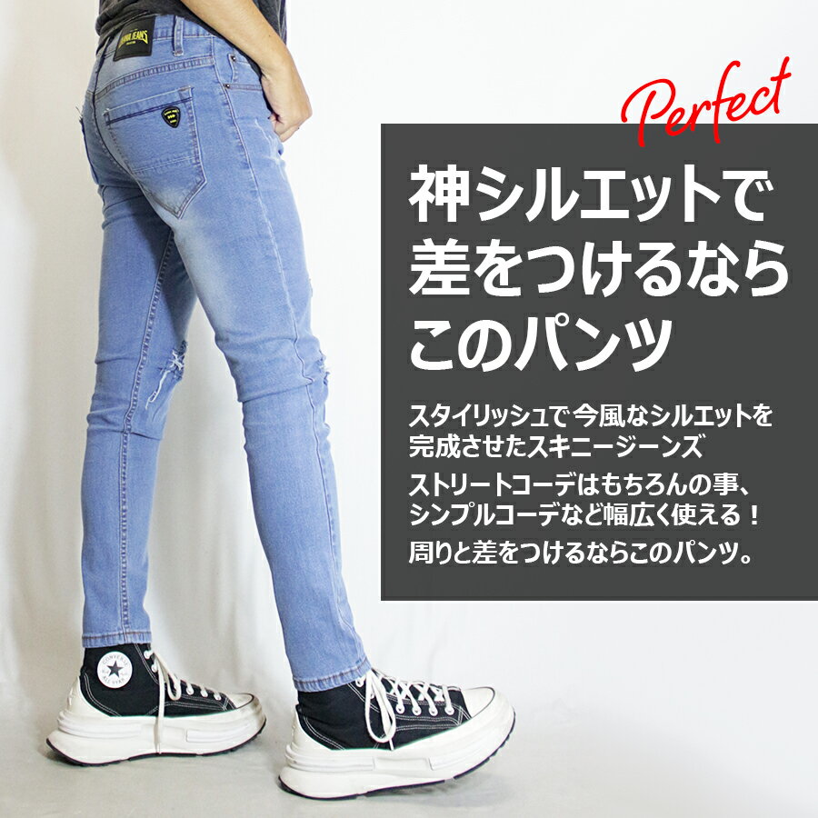 スキニージーンズ メンズ / 強ストレッチ スキニージーンズ 《 スキニー デニムパンツ スキニーデニム スキニーパンツ デニム ストレッチパンツ ダメージ ジーンズ ジーパン スリム 細身 男女兼用 ユニセックス 小さいサイズ おしゃれ ボトムス レディース キッズ 子供
