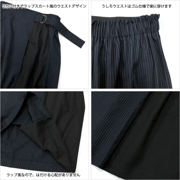 ラップスカート 巻きスカート 切替スカート ラップ スカート 秋冬 ロング 膝丈 ミモレ丈 ボトムス きれいめ カジュアル 大きいサイズ L LL 3L 4L 5L 6L ブラック 黒 ストライプ