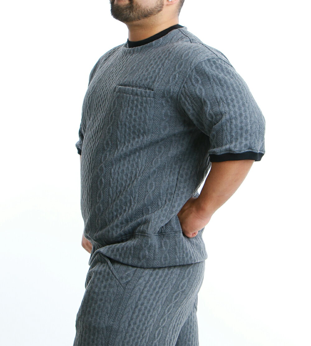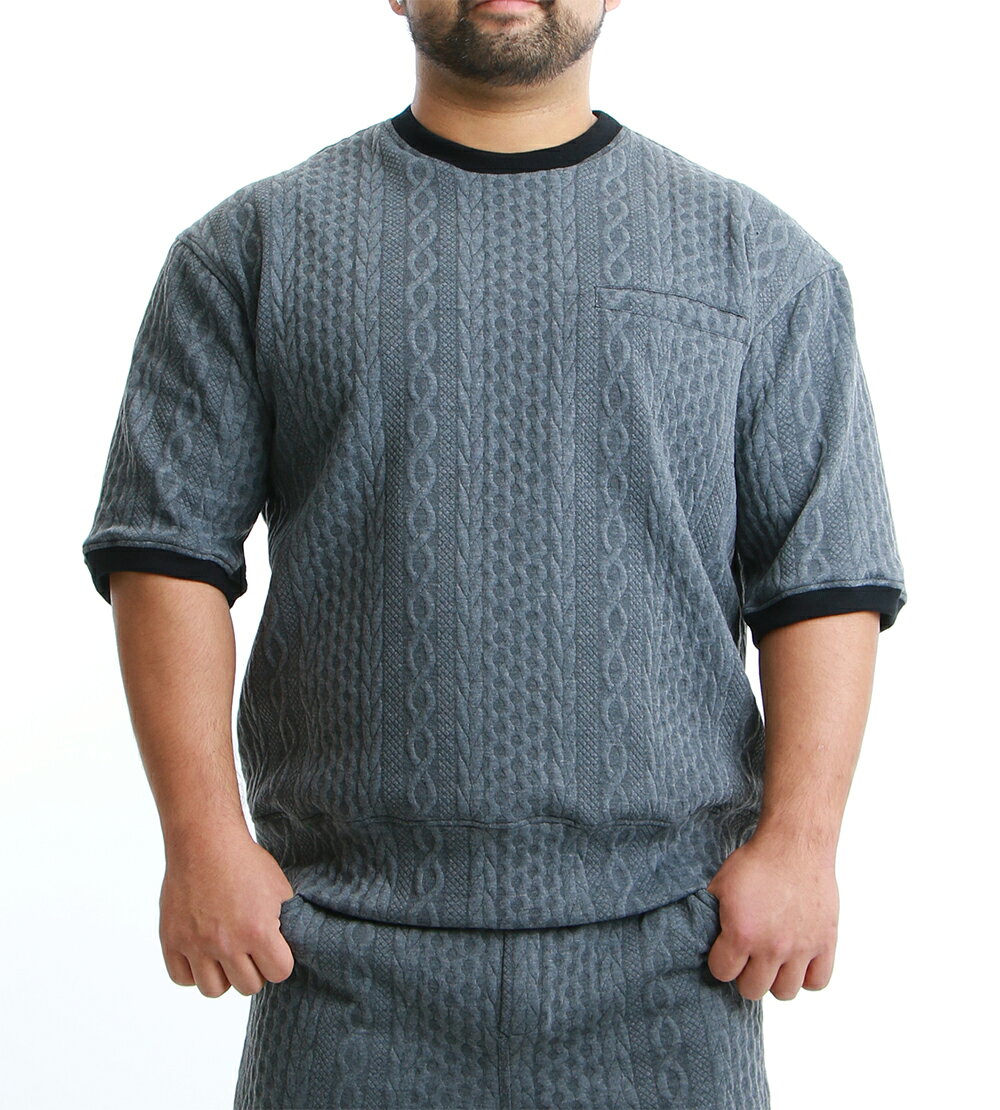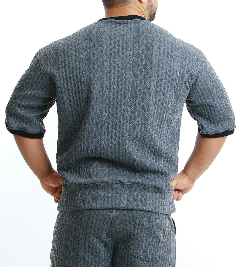 ジャガード5分袖オーバーサイズトレーナー 【トレーナー】【5分袖】【カレッジ】