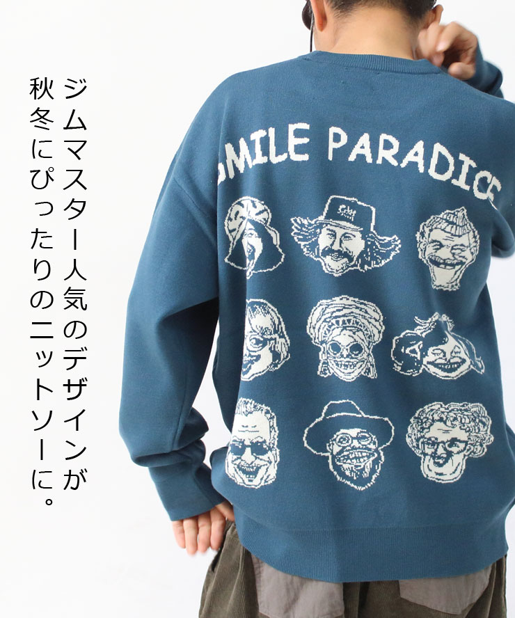 ジムマスター ニット セーター メンズ 厚手 gym master ジャガードニット SMILE PARADICE クルーネック G421725 大きいサイズ 長袖 秋 冬 秋冬