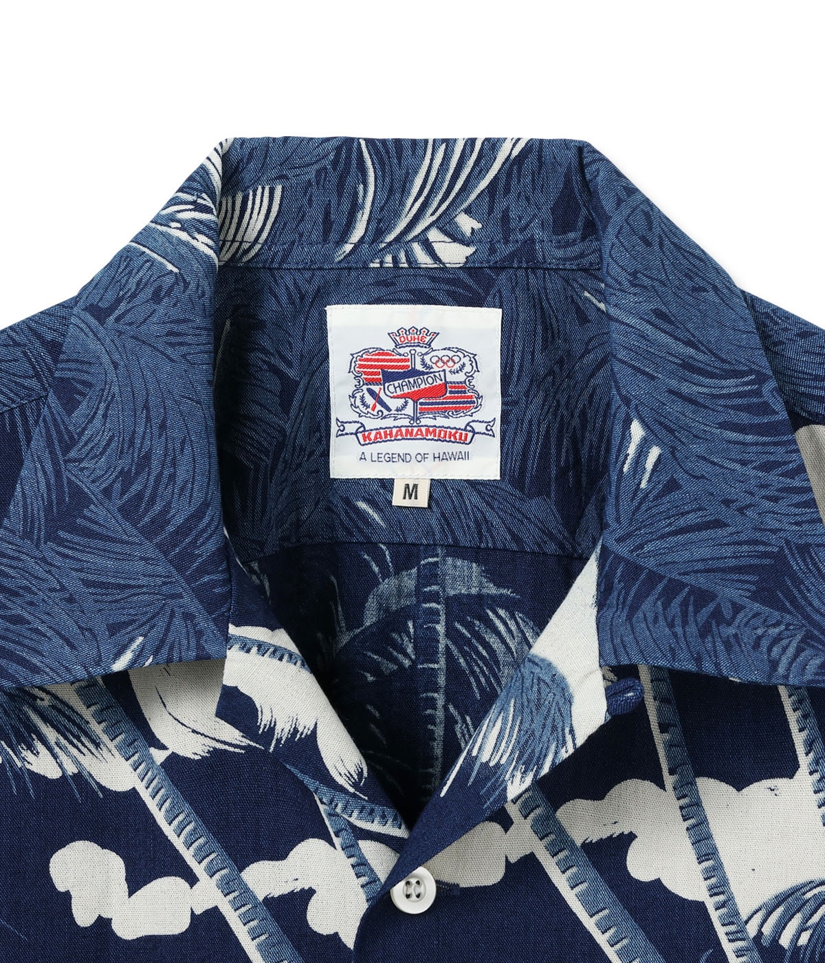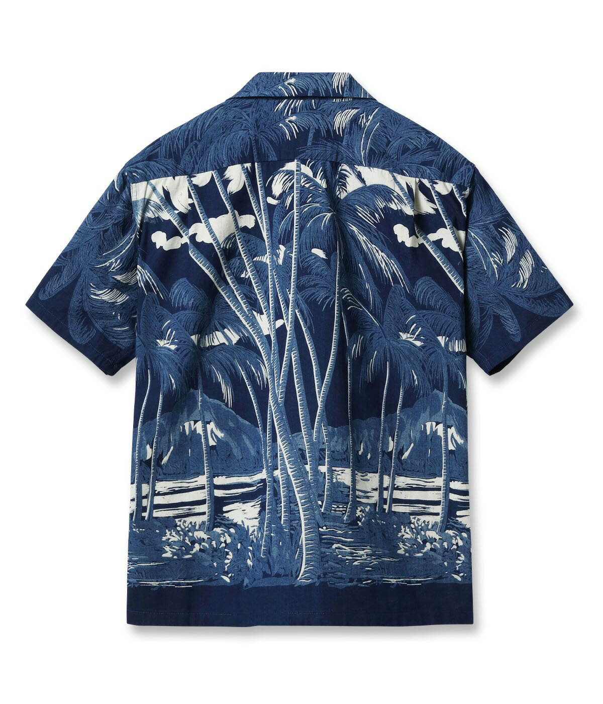 DK39452 / DUKE KAHANAMOKU INDIGO COTTON HAWAIIAN SHIRT “COCONUT PALM & DIAMONDHEAD”ネイビー