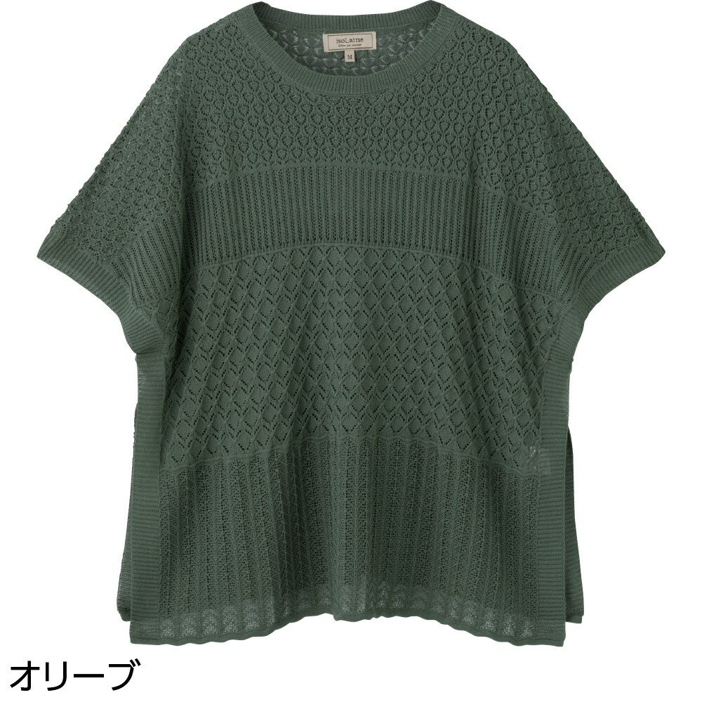 【送料無料】【全3色/2サイズ展開】透かしニットポンチョベスト(婦人) M・L ライトグレー・グレイッシュピンク・オリーブ 春夏 プレゼント ギフト 誕生日 母の日 敬老の日 還暦祝い 祖母 お年寄り おばあちゃん レディース