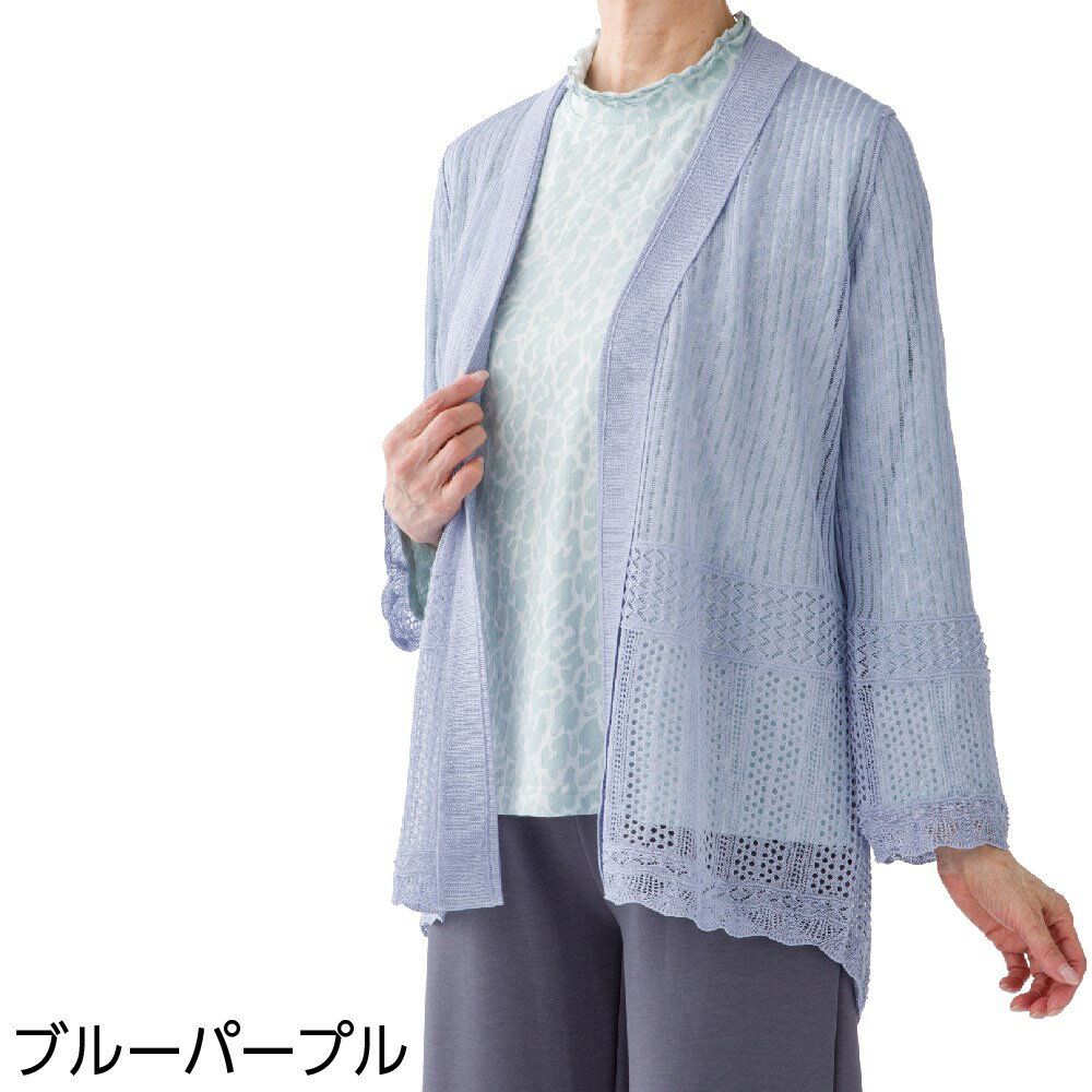 【送料無料】【全3色/2サイズ展開】ニットトッパーカーディガン(婦人) M〜L・LL アイボリー・ローズ・ブルーパープル 春夏 プレゼント ギフト 誕生日 母の日 敬老の日 還暦祝い 祖母 お年寄り おばあちゃん レディース