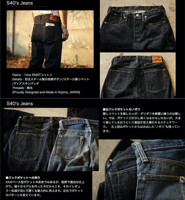 TCBJEANS TCBジーンズ S40's Jeans デニム ジーンズ 40年代 WW2 大戦モデル 14OZ 濃紺 ヴィンテージ ワーク ストレート ムラ糸 コットン ティーシービージーンズ アメカジ メンズ