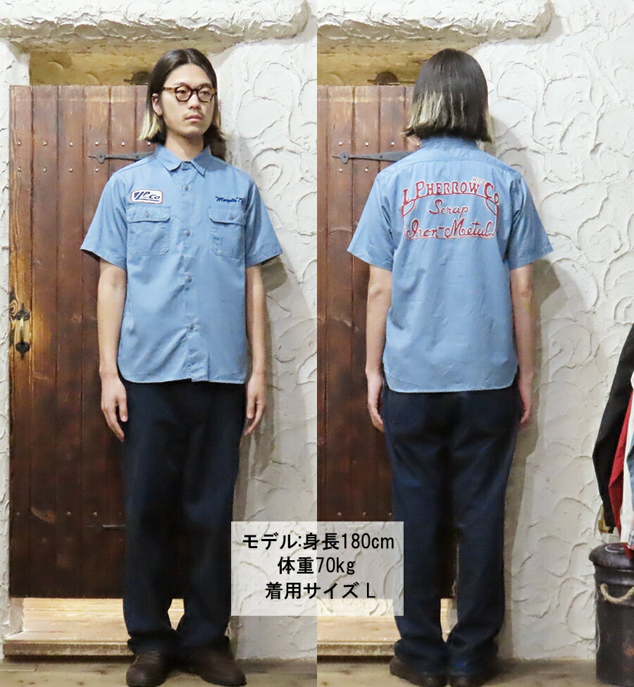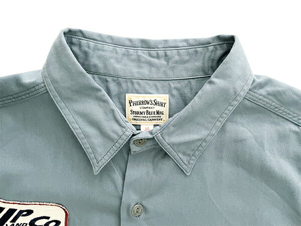 フェローズ Pherrow's カスタム ワークシャツ 25S-PCWS1-E 半袖 架空シリーズ チェーン刺繍 ワッペン コットン ツイル ロゴ ユニフォーム ヴィンテージ アメカジ メンズ 日本製 2025年 春夏 新作